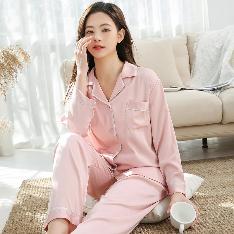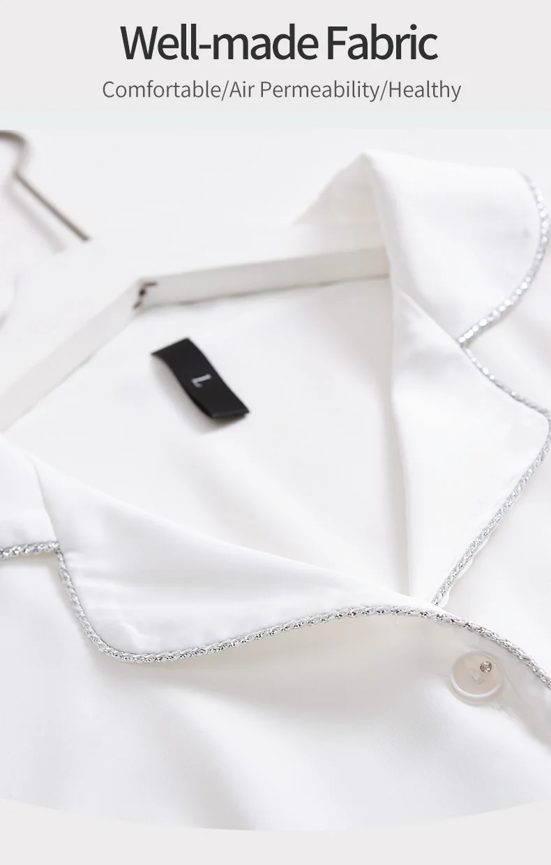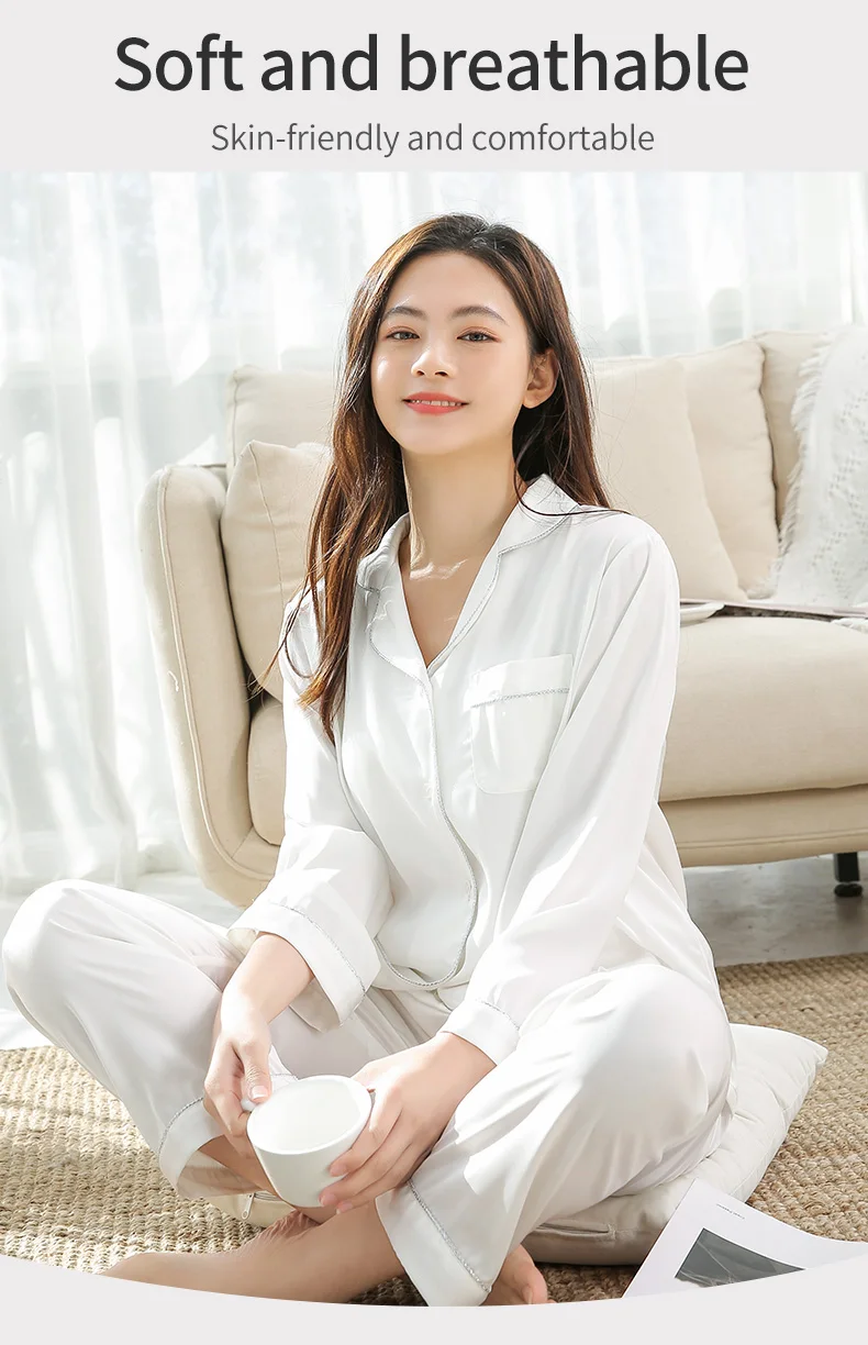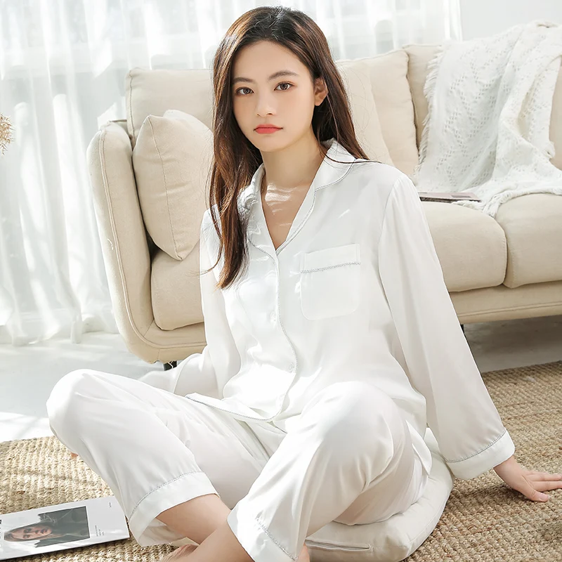 Пижама женская атласная однотонная, элегантная белая Пижама, комплект для сна, ночная рубашка из вискозы, пеньюар, на весну-лето, 2022