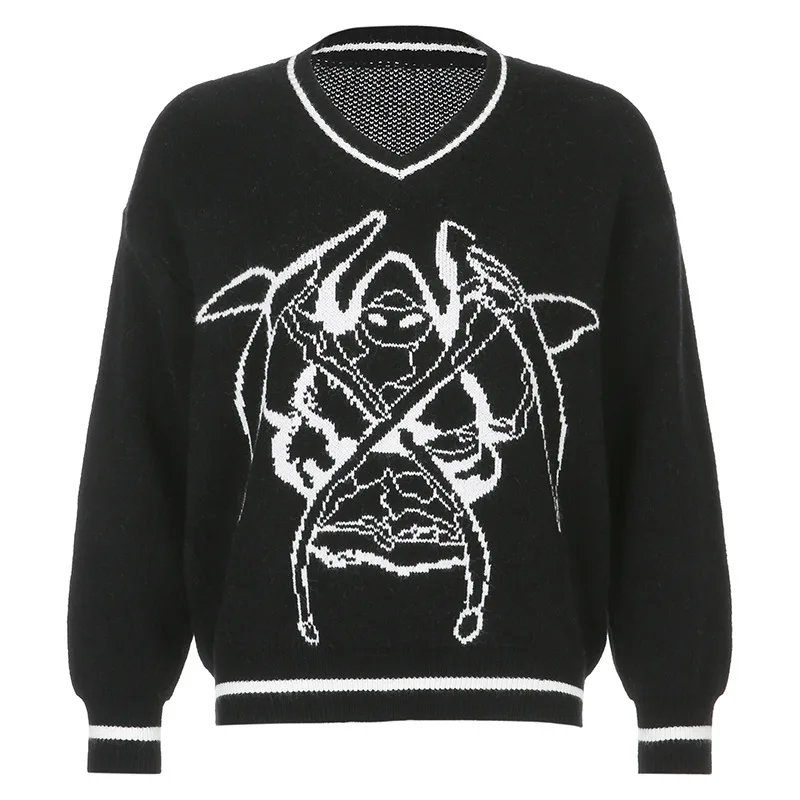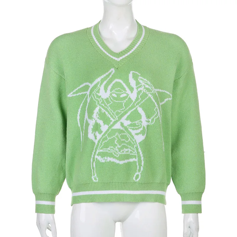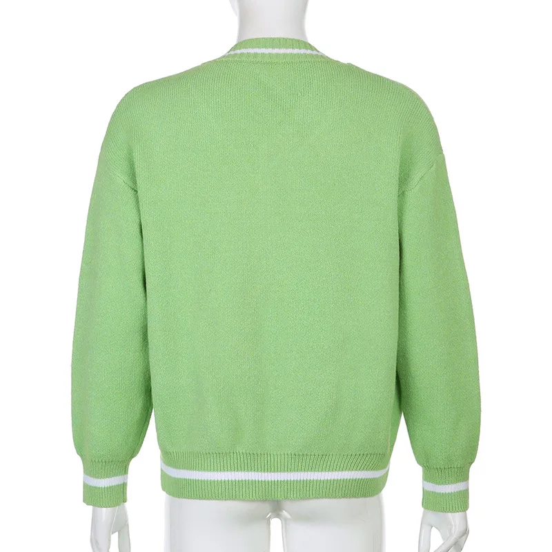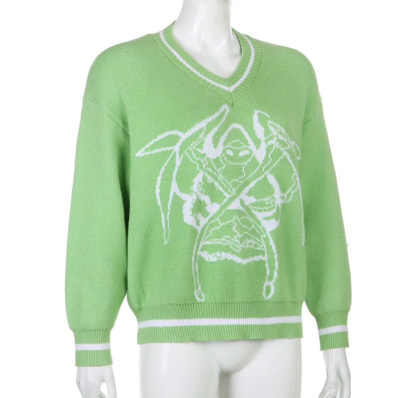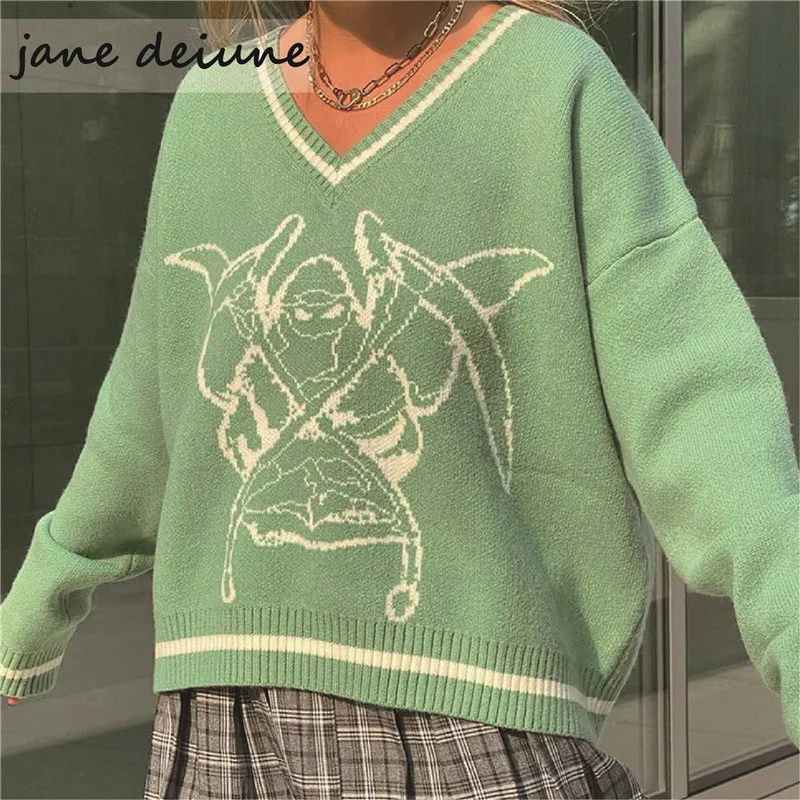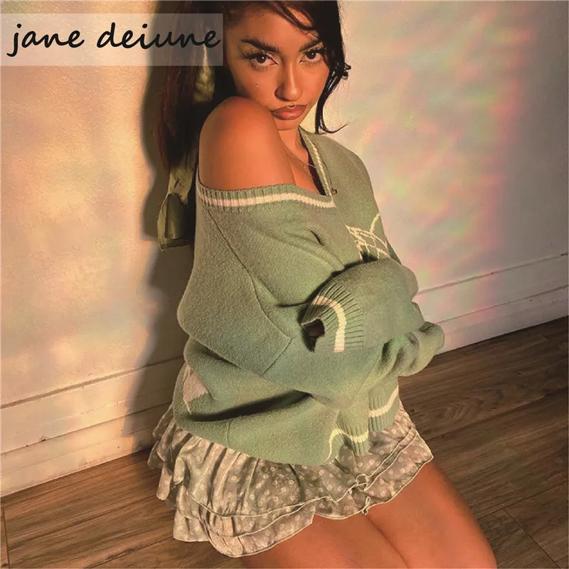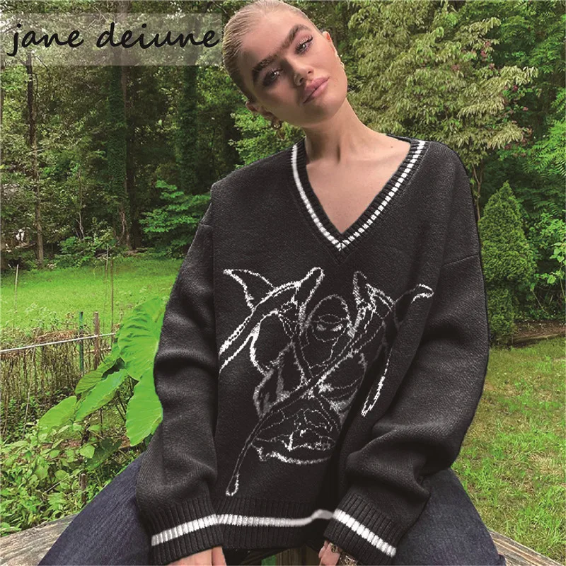 Женский шерстяной пуловер Jane Deiune, повседневный жаккардовый Свитер оверсайз с V-образным вырезом и длинными рукавами для весны, 2021