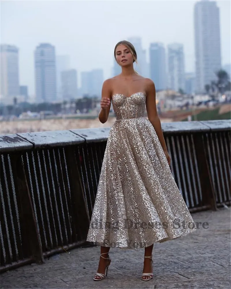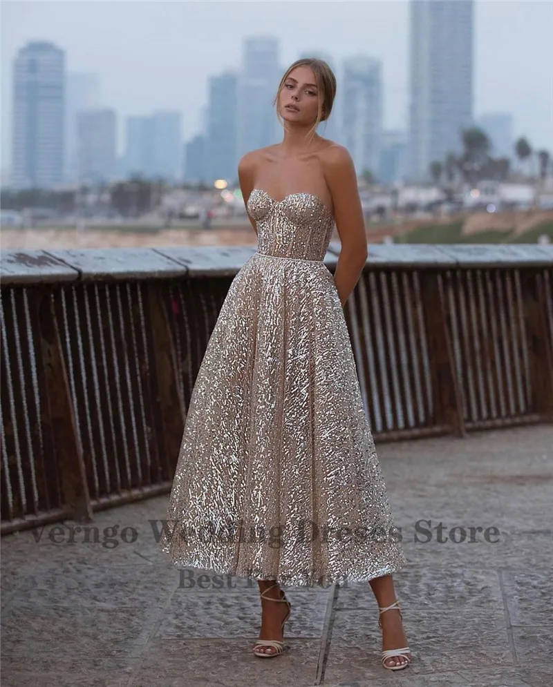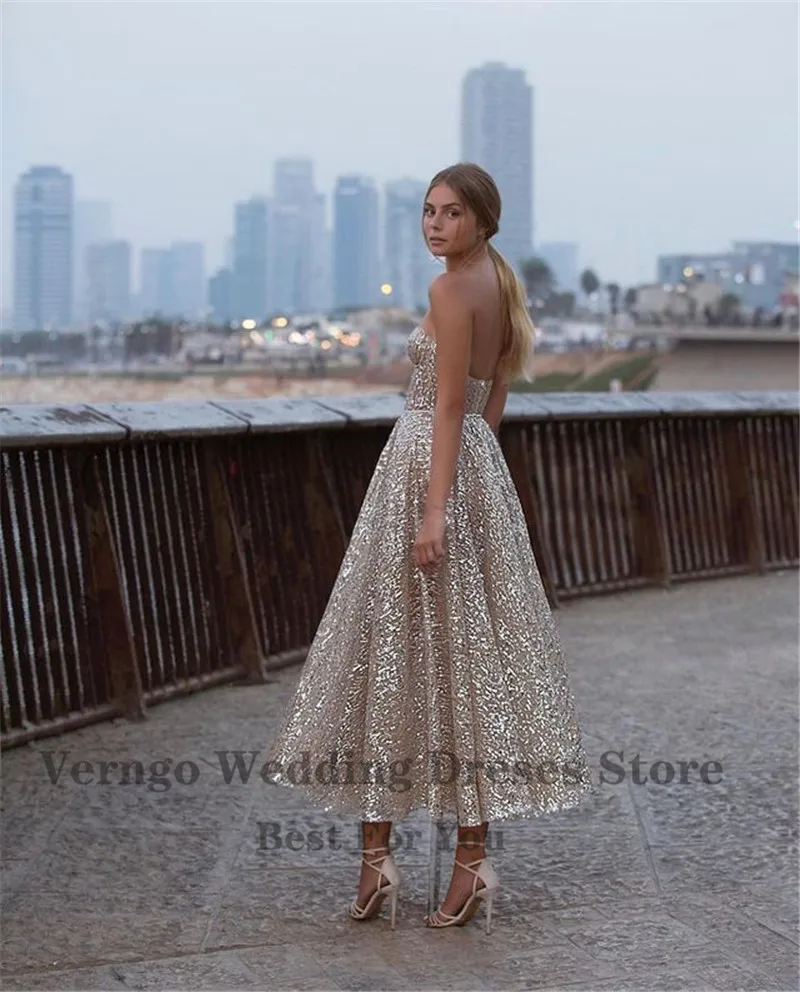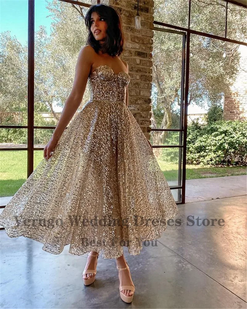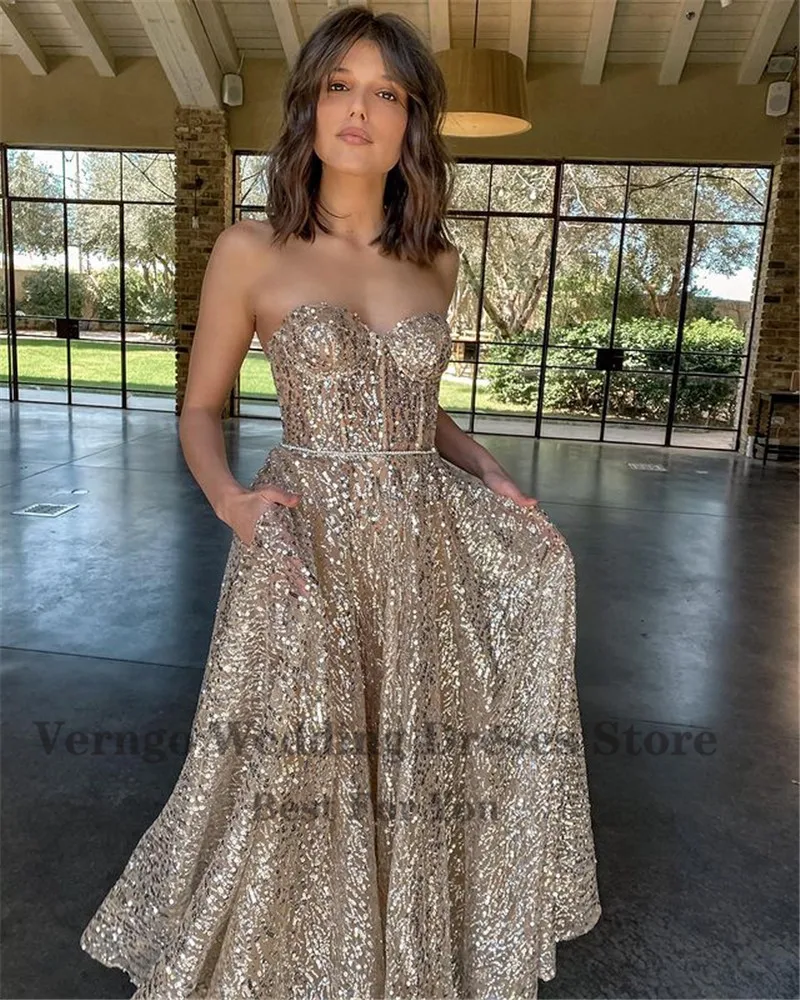 Вечерние блестящие золотистые трапециевидные платья Verngo, облегающий лиф для милой сердца, платье до щиколотки для выпускного вечера, 2021, платье для свадебной вечеринки