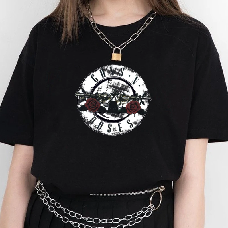 Футболка женская в стиле оверсайз с принтом GUNS and рок-группа, розы, уличная одежда в стиле панк, летние топы, Прямая поставка
