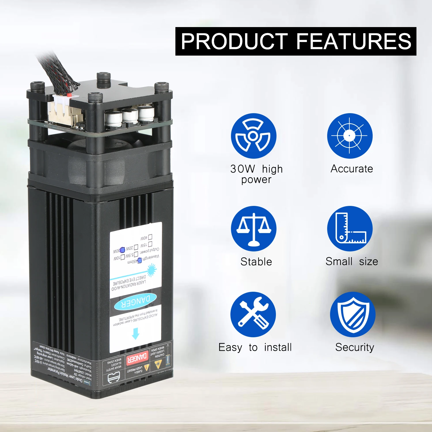 В комплект лазерного модуля «сделай сам» входит плата адаптера для 3 входных методов с кабелем TLL и 3-контактным кабелем, который универсально подходит для всех устройств для лазерной гравировки, 3D-принтера и фрезерного станка с ЧПУ. С длиной волны 450 нм, это эффективный инструмент для лазерной гравировки и лазерной резки. Есть 5 мощных лазерных модулей на выбор, они могут гравировать и разрезать разнообразные материалы. Особенности: Комплект лазерного модуля Universtal-посылка комплект входит лазерный модуль, плата адаптера метода ввода 3, кабель 2 Pin и 3 pin, блок питания и шнур питания. Плата адаптера 3 интерфейса и 2 кабеля предназначены для лазерного гравера, 3D-принтера, Фрезы с ЧПУ. Вы можете свободно использовать наш лазерный модуль в разнообразной раме. Обновление голубого лазерного модуля -- обновление профессионального лазерного модуля с меньшими потерями и высокой точностью, при этом высокая скорость, высокая стабильность и длительный срок службы. Яркий сине-фиолетовый светильник, точное Пятно без бродсветильник, легко определить местоположение при гравировке. Фиксированный фокус-поставляется с дополнительным фокусным кольцом, помогающим выравнивать расстояние гравировки между лазерным модулем и резьбовыми предметами. Легко собирается безопасное использование-маленький и компактный, удобный и простой в установке. Поставляются с защитными очками, обеспечивают безопасность рабочего процесса. 40 Вт резьбовой материал-он может гравировать 201/304 нержавеющей стали, титановой стали и анодированного алюминия, камня, МДФ, бальзы, дерева, ткани, пластика, печатных плат, бумаги, бамбука, рога, кожи, губчатая бумага и т. д. Не гравируется: медь ra w Материал s, алюминий ra w Материал s. 40 Вт режущие материалы-резка фанеры, резка черной акриловой доски, кожи, бумаги и т. д. Спецификация: Вилка: ЕС/США/Великобритания/Австралия (опционально) Мощность лазера: 5500 МВт/10 Вт/20 Вт/30 Вт/40 Вт (опционально) Материал: алюминиевый сплав + пластик Цвет светильник: сине-фиолетовый Входное напряжение: 12 В Длина волны: 448-462nm Форма затычка: кнопка, регулируемый фокус (30 Вт не может регулировать фокусировку) Источник питания: Вход: AC 100-240V 50-60Hz Выход: 12 В 6А Комплектация: 1 * лазерный модуль 1 * комплект аксессуаров для установки 1 * вспомогательная фокусировка 1 * конверсионная плата 1*2 контактный шнур 1*3 контактный шнур 1 * очки 1 * блок питания 1 * шнур питания