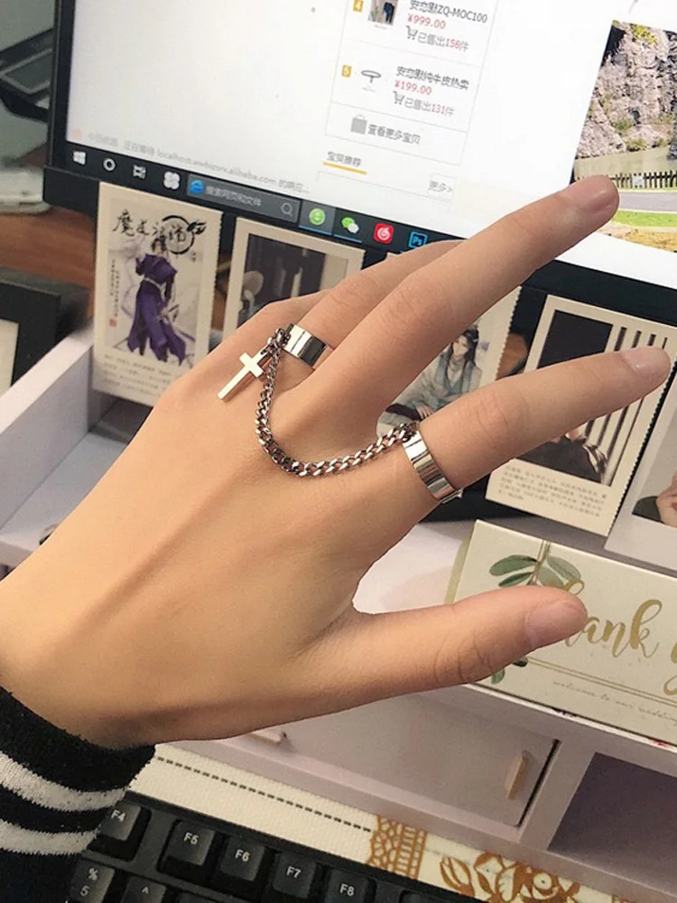 Регулируемое кольцо с перекрестной цепочкой для мужчин и женщин, ви...
