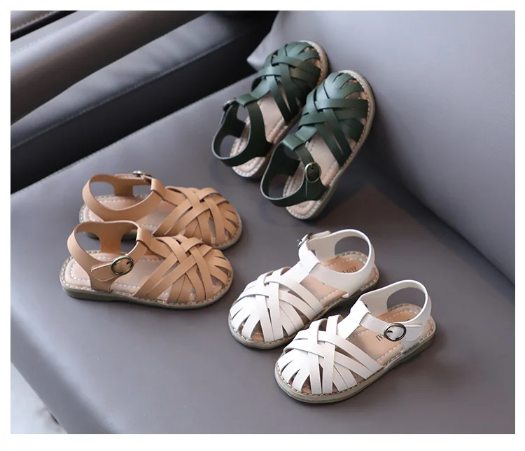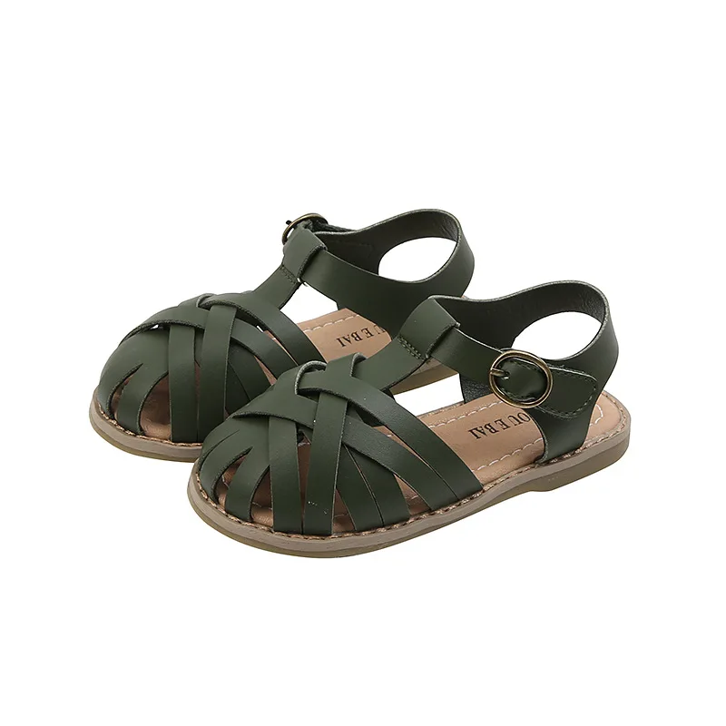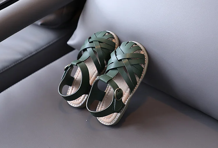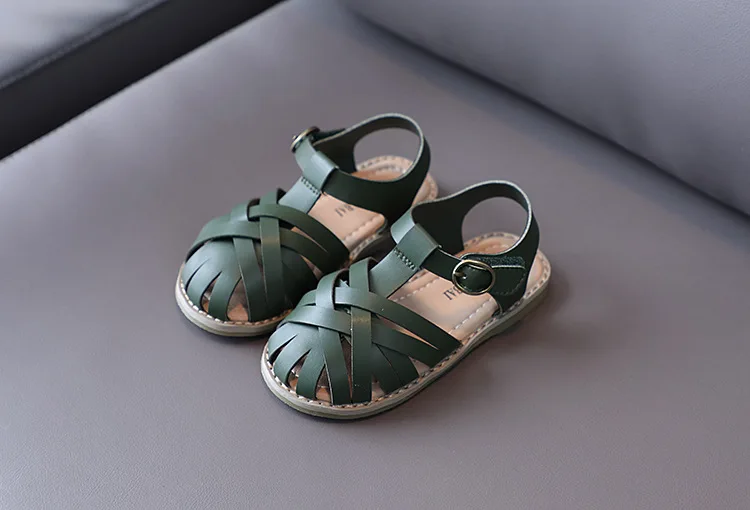 Летние пляжные сандалии для маленьких девочек, повседневные сандалии с переплетением, модные сандалии для маленьких мальчиков, зеленая брендовая мягкая обувь, новинка, 2021