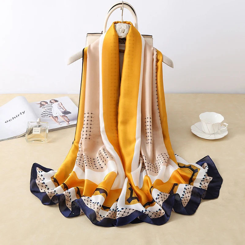 Женский Шелковый зимний шарф, роскошный дизайн, женская пляжная шаль с принтом, шарфы, модный гладкий платок, Женский хиджаб