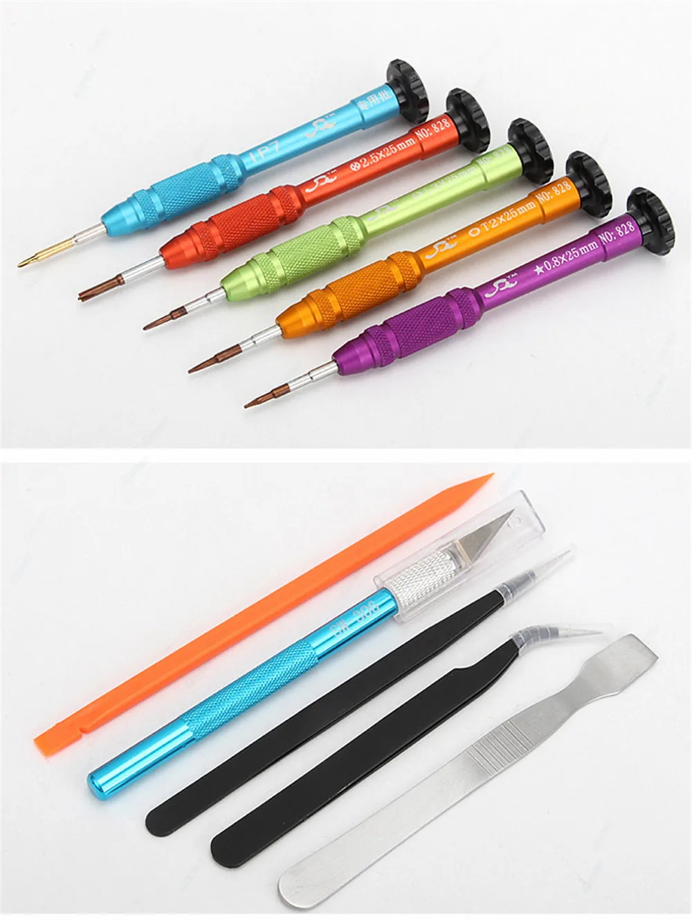 ● 4x отвертка (отвертка Y0.6, отвертка 0,8 мм, отвертка T2, Отвертка Phillips 1,3 мм, Специальная насадка для iPhone 2,5 мм)