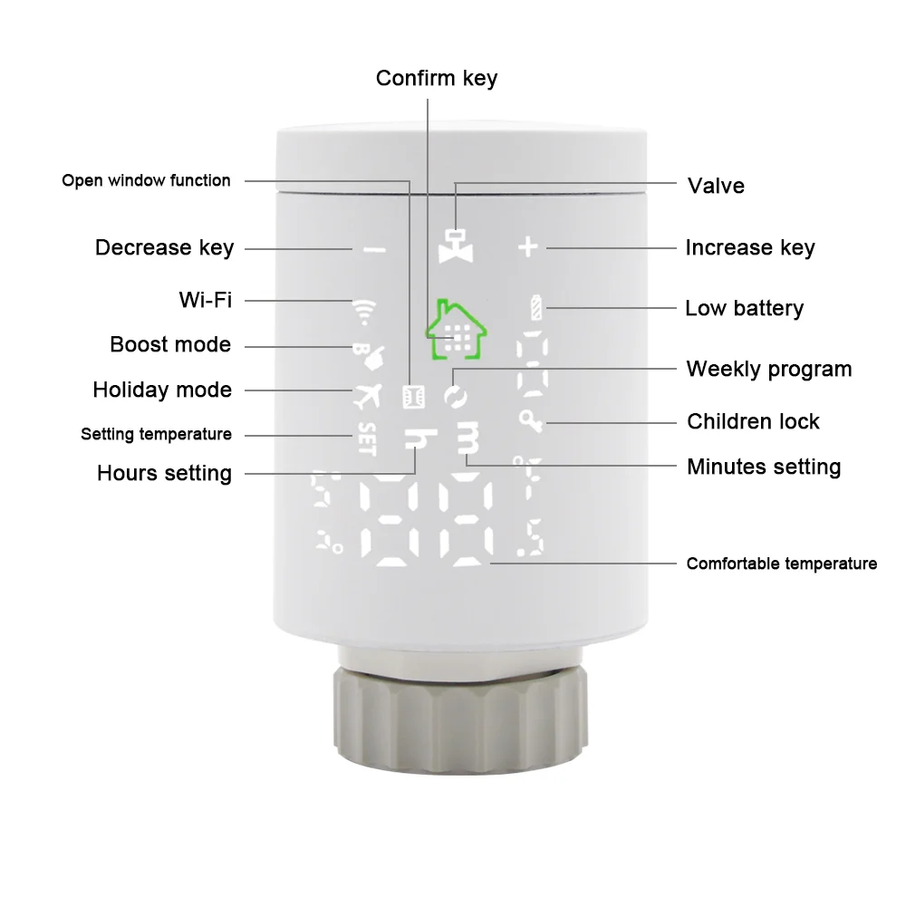 HY368-это smart TRV, который может устанавливать его непосредственно на панель радиатора для включения или выключения управляющего Клапана. И вы можете использовать устройство для комфортной комнатной температуры и экономии энергии.
