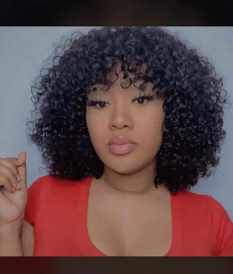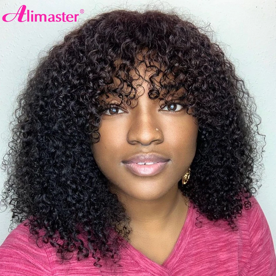 Кудрявые человеческие волосы парик с челкой 180 плотность короткий кудрявый парик для женщин полная машина сделано не кружева парик бразильские волосы парик Remy
