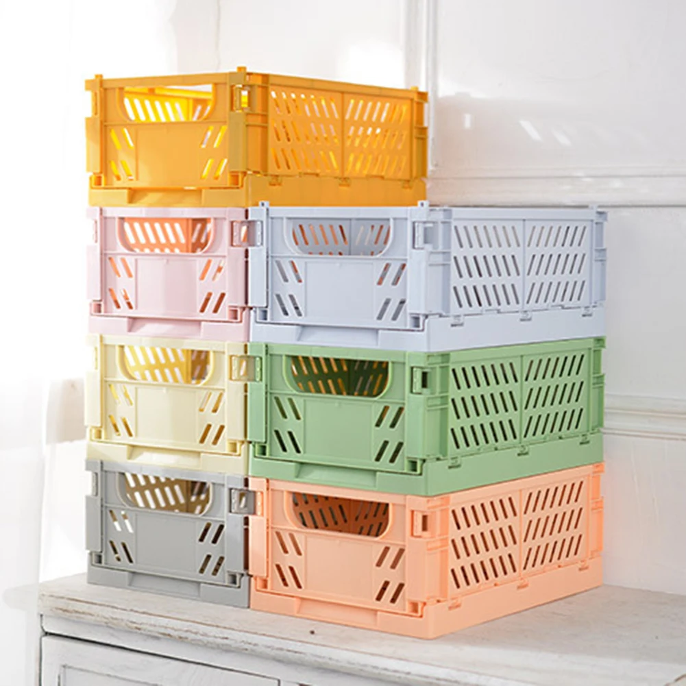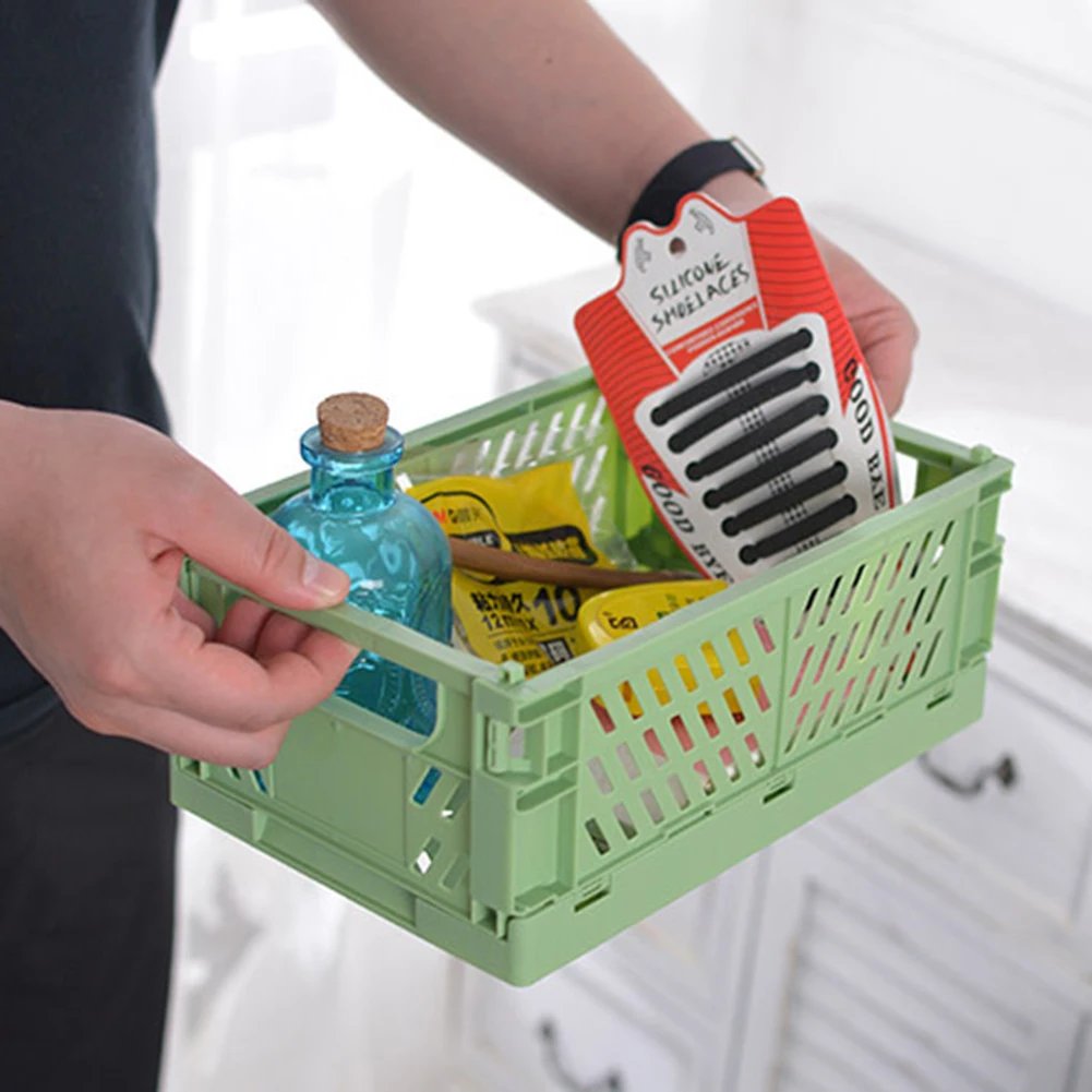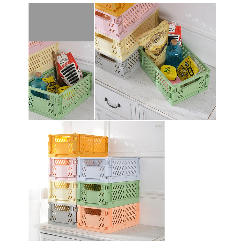Складной ящик, пластиковые корзины для хранения, складной настольный органайзер для косметики, мелочей, коробка, Штабелируемый контейнер для хранения фруктов, продуктов, игрушек