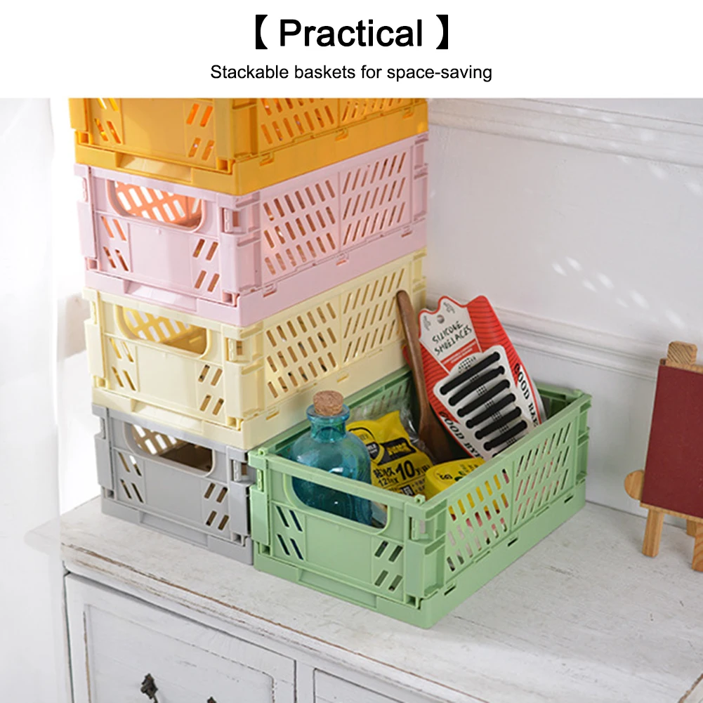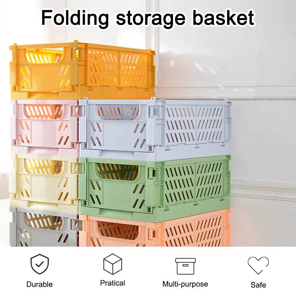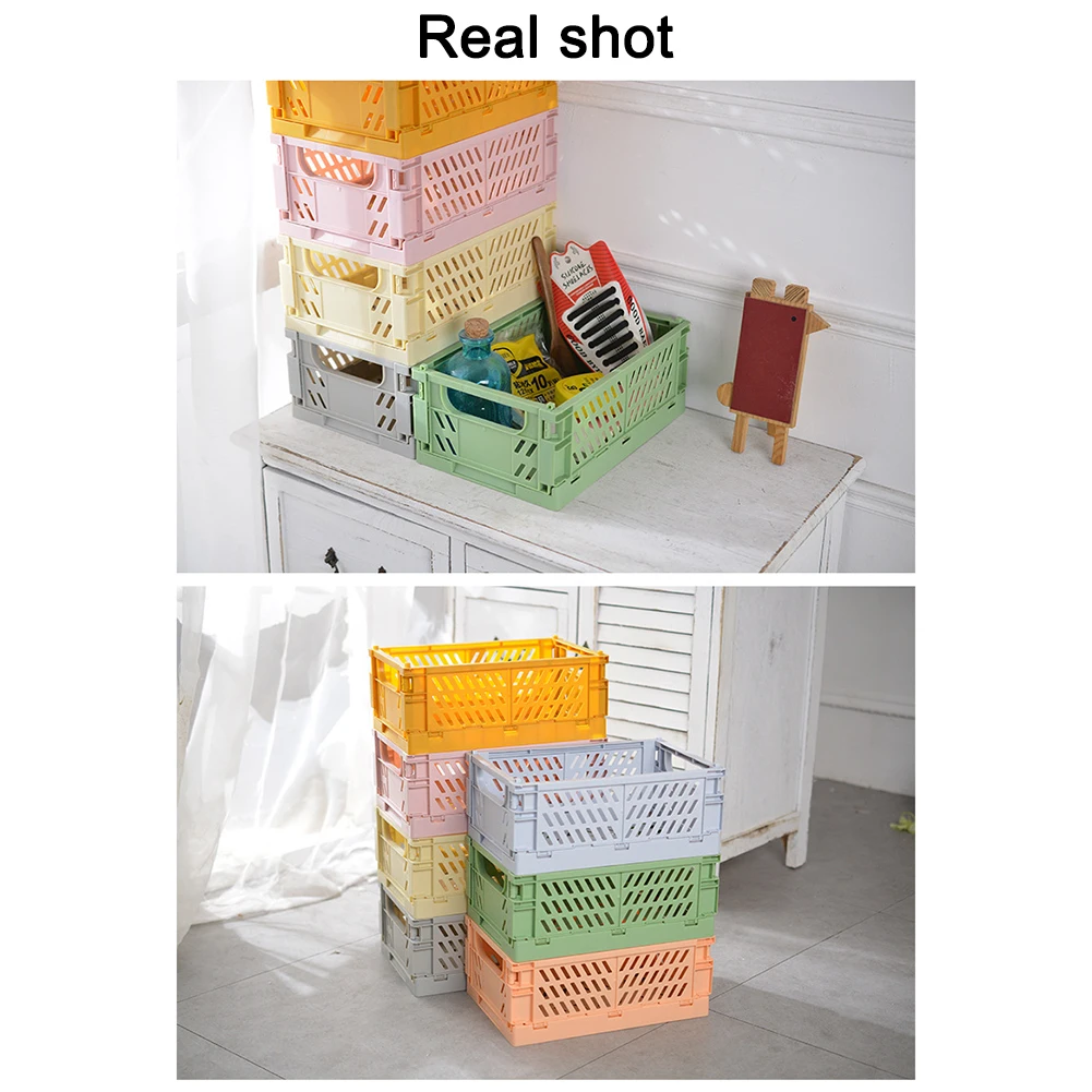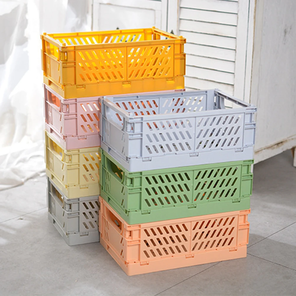 Складной ящик, пластиковые корзины для хранения, складной настольный органайзер для косметики, мелочей, коробка, Штабелируемый контейнер для хранения фруктов, продуктов, игрушек