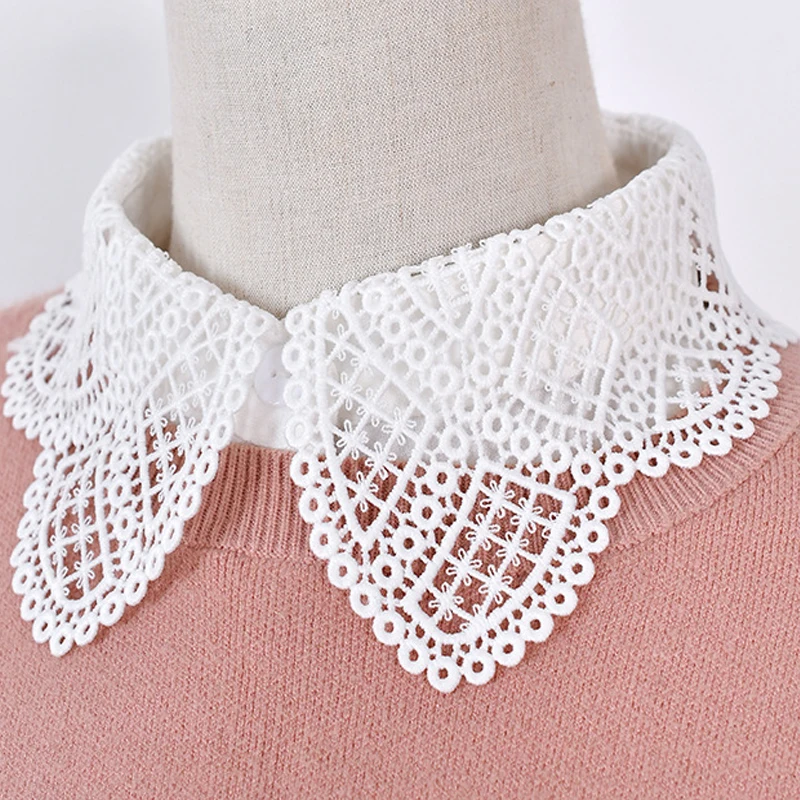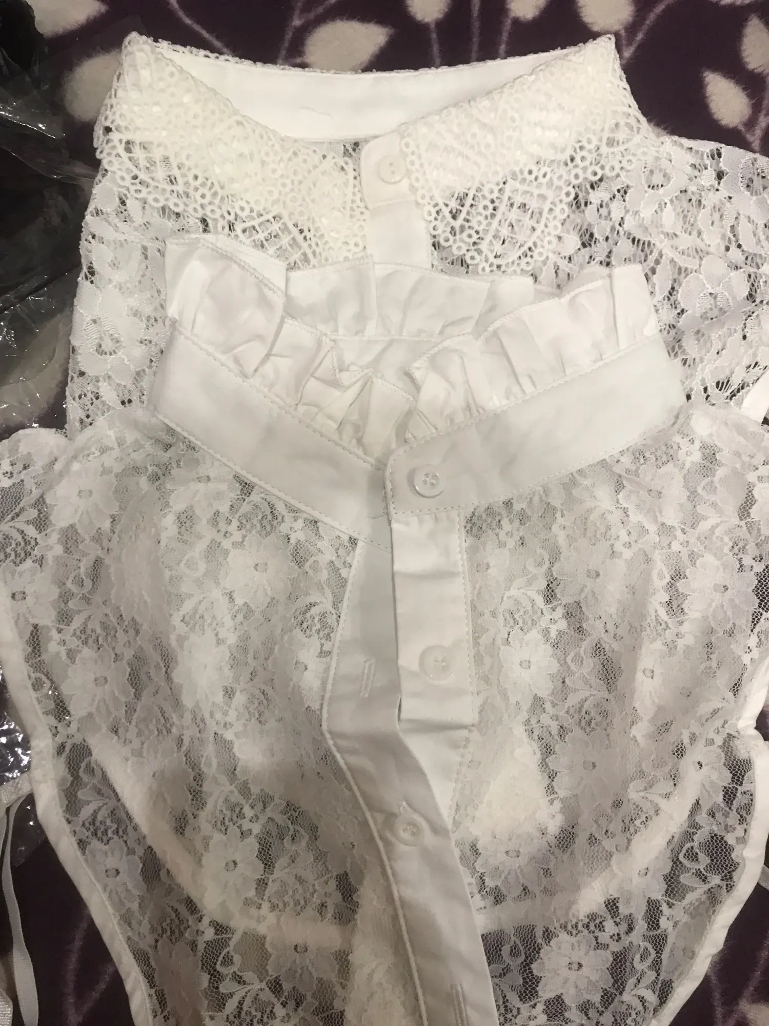 Новинка, Женский Белый поддельный съемный воротник, хлопковая кружевная рубашка, воротник, Дамская блузка, воротник, полурубашка, аксессуары для одежды