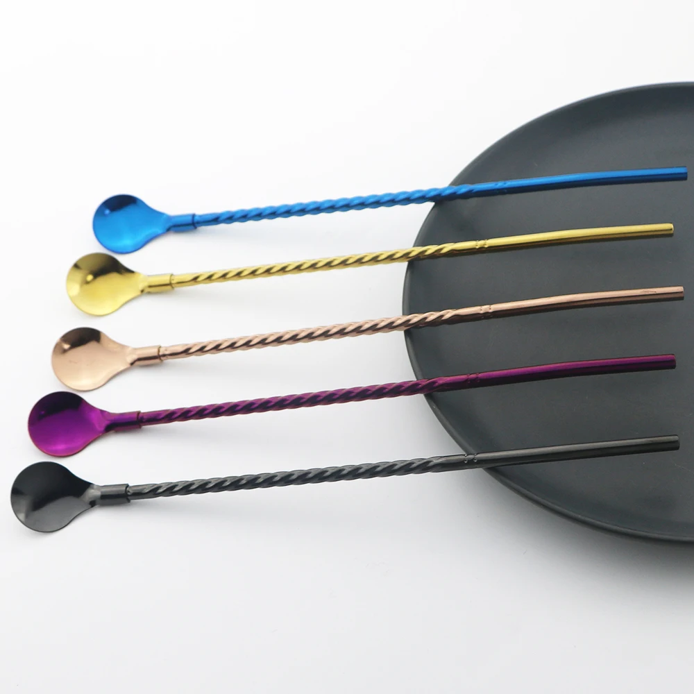 4 шт.компл. 1810 соломинки многократного использования из нержавеющей стали длинная соломенная ложка разноцветная чайная ложка для бара коктейль кофе перемешивание Питьевая Ложка