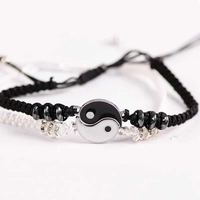 Браслеты для пар Tai Chi Yin Yang, подвеска из сплава, регулируемая плетеная цепочка, браслет, ожерелье, подходящие браслеты для влюбленных, подарок