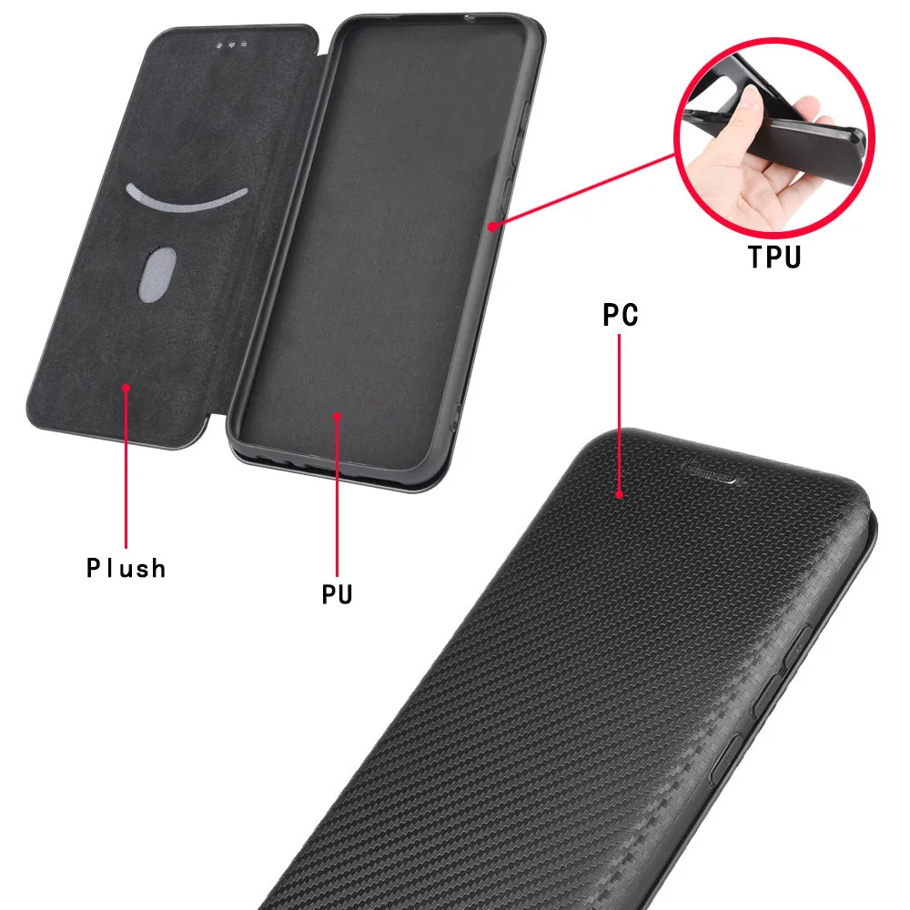 Чехол-книжка для TCL 10, 2021, из углеродного волокна, с магнитной ...