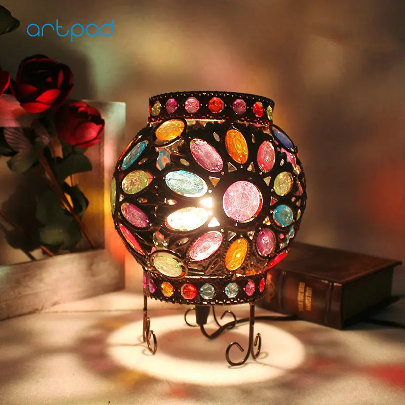 Artpad средиземноморская дизайнерская Турецкая настольная лампа разных цветов с затемнением в богемном стиле винтажная лампы из мозаики ручной работы украшение для спальни E14