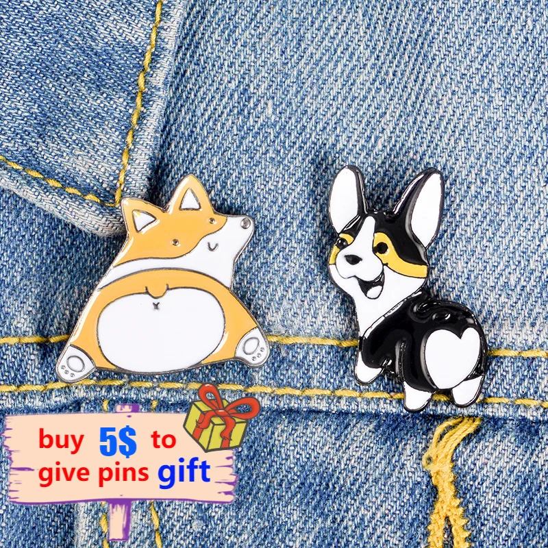 Значки на лацкан с изображением забавного щенка, котенка, собаки корги, броши с котами, для сумок, одежды