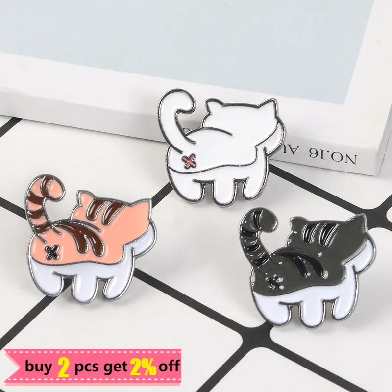 Забавное Животное эмалированная булавка на заказ ленивая кошка белы...