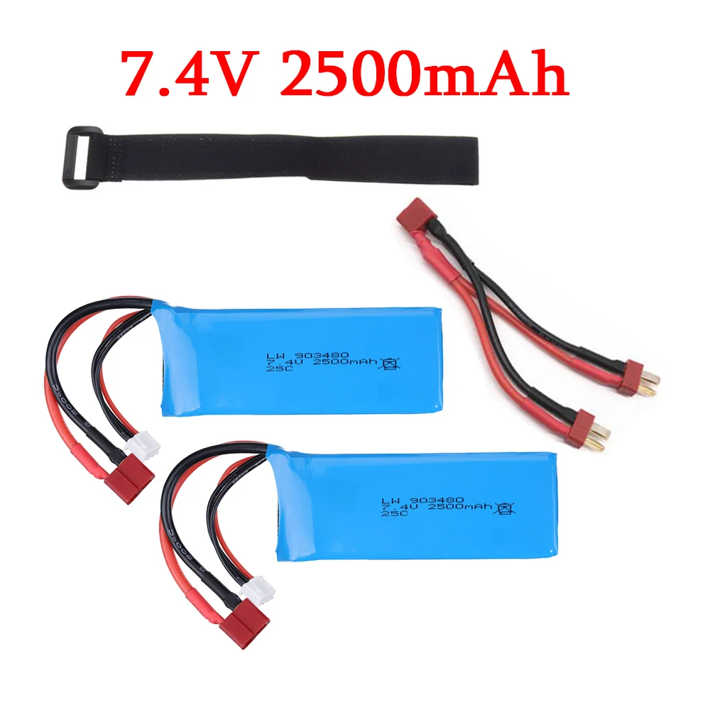Особенности:7,4 в 2500 мАч 25C 2S Li-Po батарея с Т-образной вилкой, включая две батареи. Разработано идеально, чтобы T plug WLtoys 12428 RC автомобиль, RC самолет, вертолет, грузовик, лодка, Дрон, FPV, и т. Д.