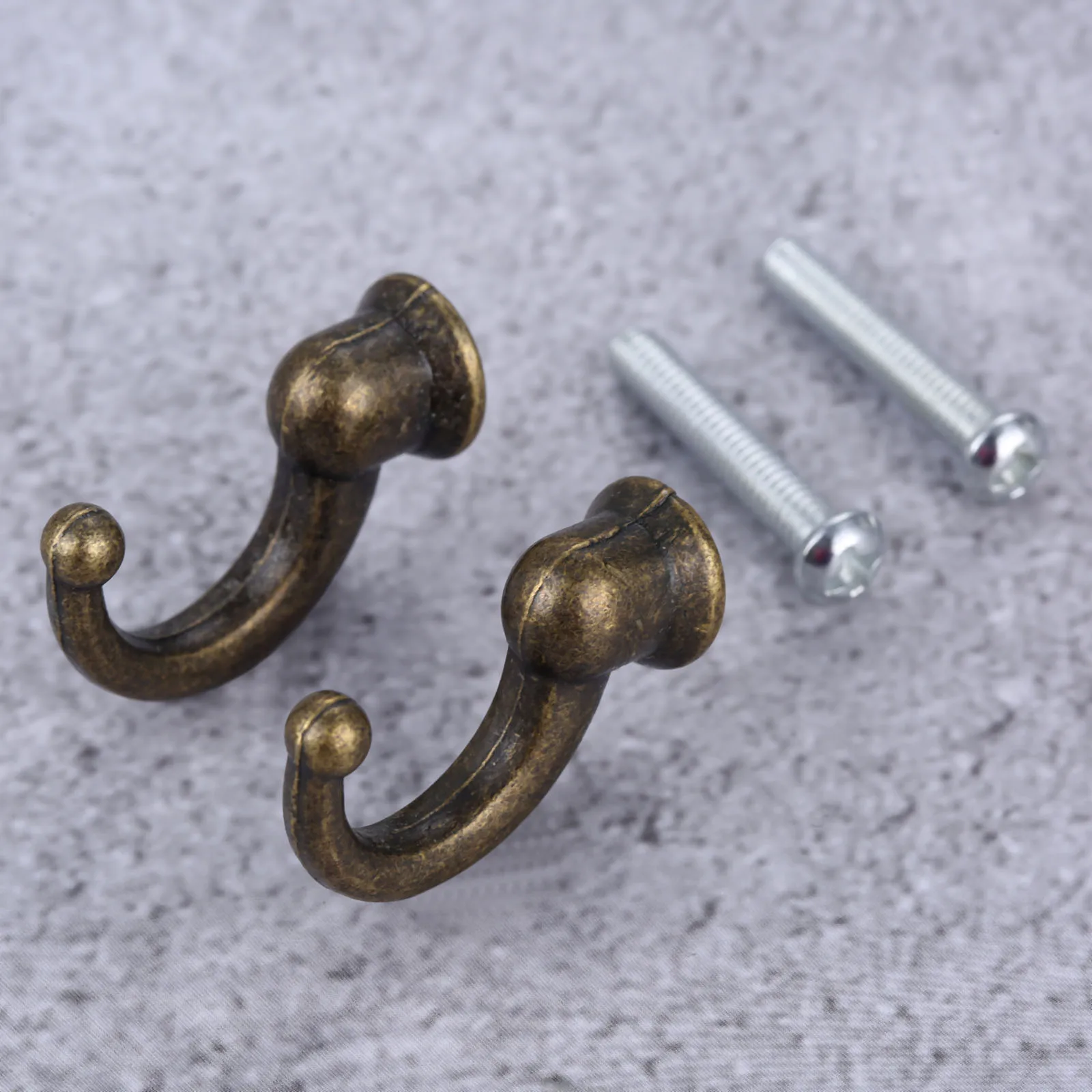 100% новый товар высокого качества. Дизайн в стиле ретро. Винтажные крючки, могут быть установлены в ванной, кухне, спальне или примерочной комнате и т. д. Идеально подходит для подвешивания полотенец, одежды, шляпы, сумки, ключей шарф или сумки для покупок Легко устанавливается на стену или дверь. Винты в комплекте. Материал: цинковый сплав Размер: прибл. 29*20*12 мм/1,14*0,79*0,47 дюймов Цвет: античная бронза