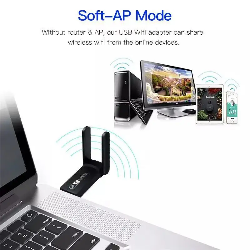 USB Wi-Fi адаптер 1200 Мбитс, Двухдиапазонная беспроводная сетевая ...