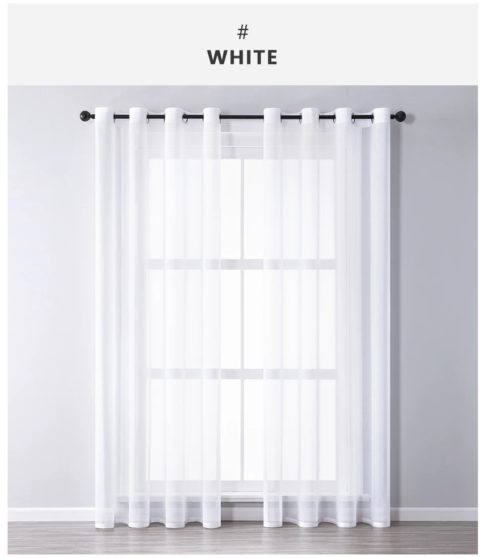 Белая Тюлевая занавеска s для гостиной, однотонная прозрачная вуаль...