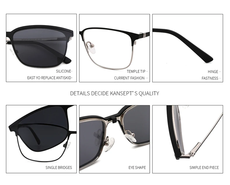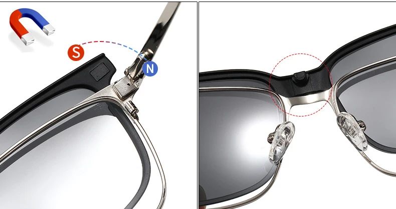 Очки солнцезащитные Мужские поляризационные, оптические аксессуары 2 в 1 с магнитным зажимом, при близорукости, в металлической оправе, TR90, F2034