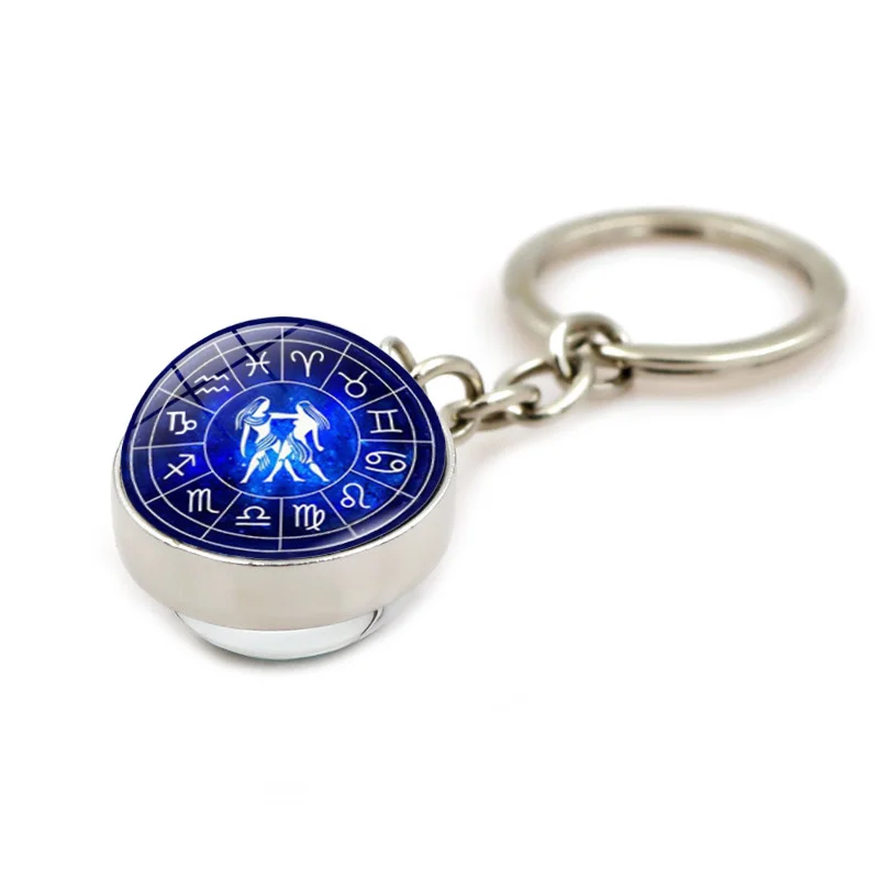 Брелок для ключей со стеклянным шаром, со знаком зодиака, 12, брело...