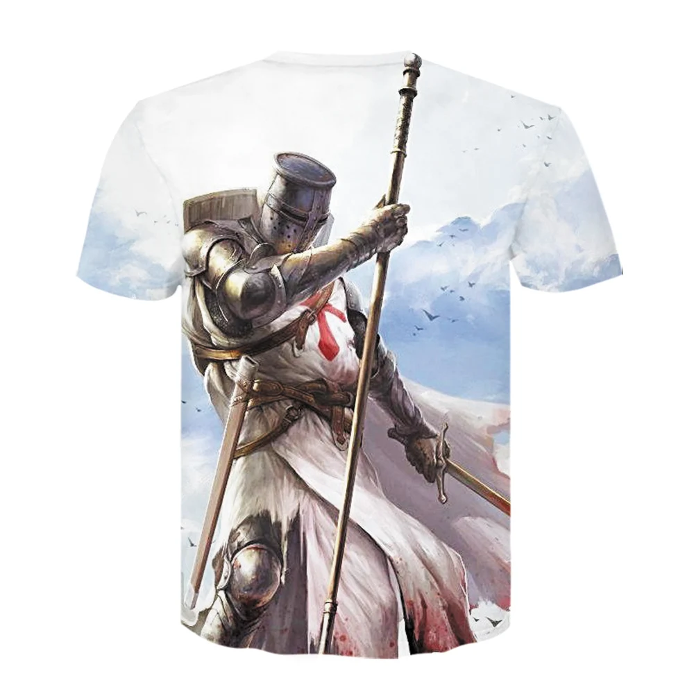 Мужская футболка с 3D принтом рыцарей-тамплиеров, летняя Уличная По...