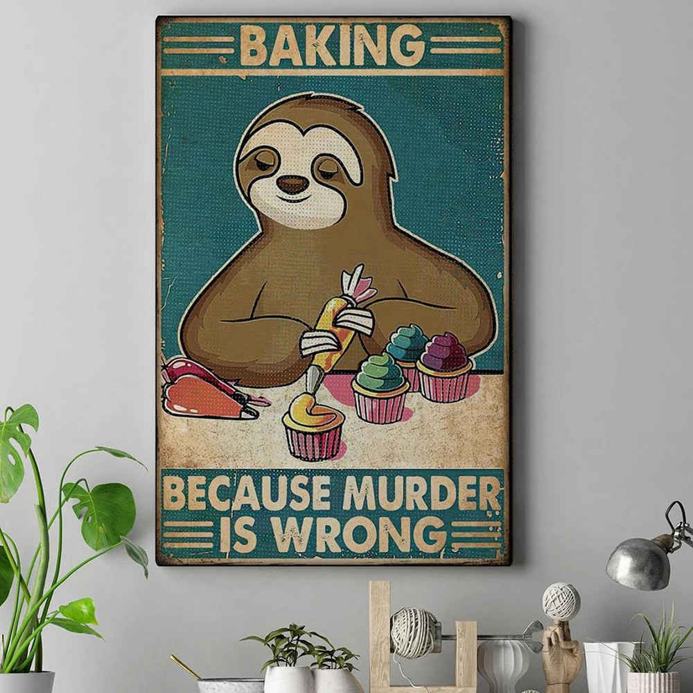 Настенный плакат с принтом на холсте Ленивец, Современная винтажная картина испечь торт, домашний декор, модульная рамка с животными для гостиной