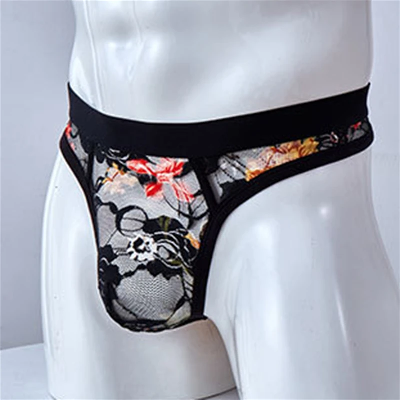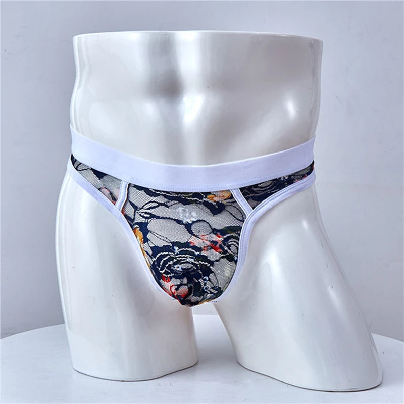 Стринги мужские, кружевные, прозрачные, с низкой посадкой, с принтом