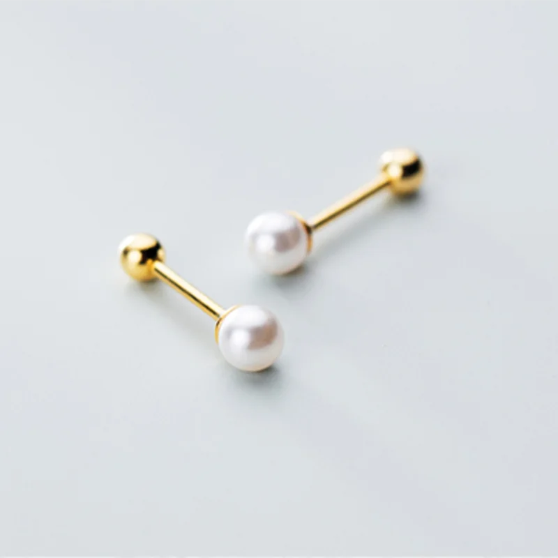 WOOZU реальные 925 стерлингового серебра мини жемчужные бусы для пирсинга, серьги со шпилькой, для женщин, свадебные туфли для девушек в стиле панк, хорошее ювелирное изделие, подарок Pendientes
