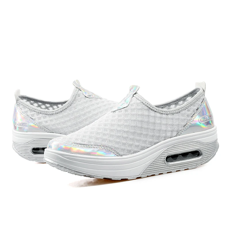 Кроссовки женские на платформе, без шнуровки, плоская подошва, прог...