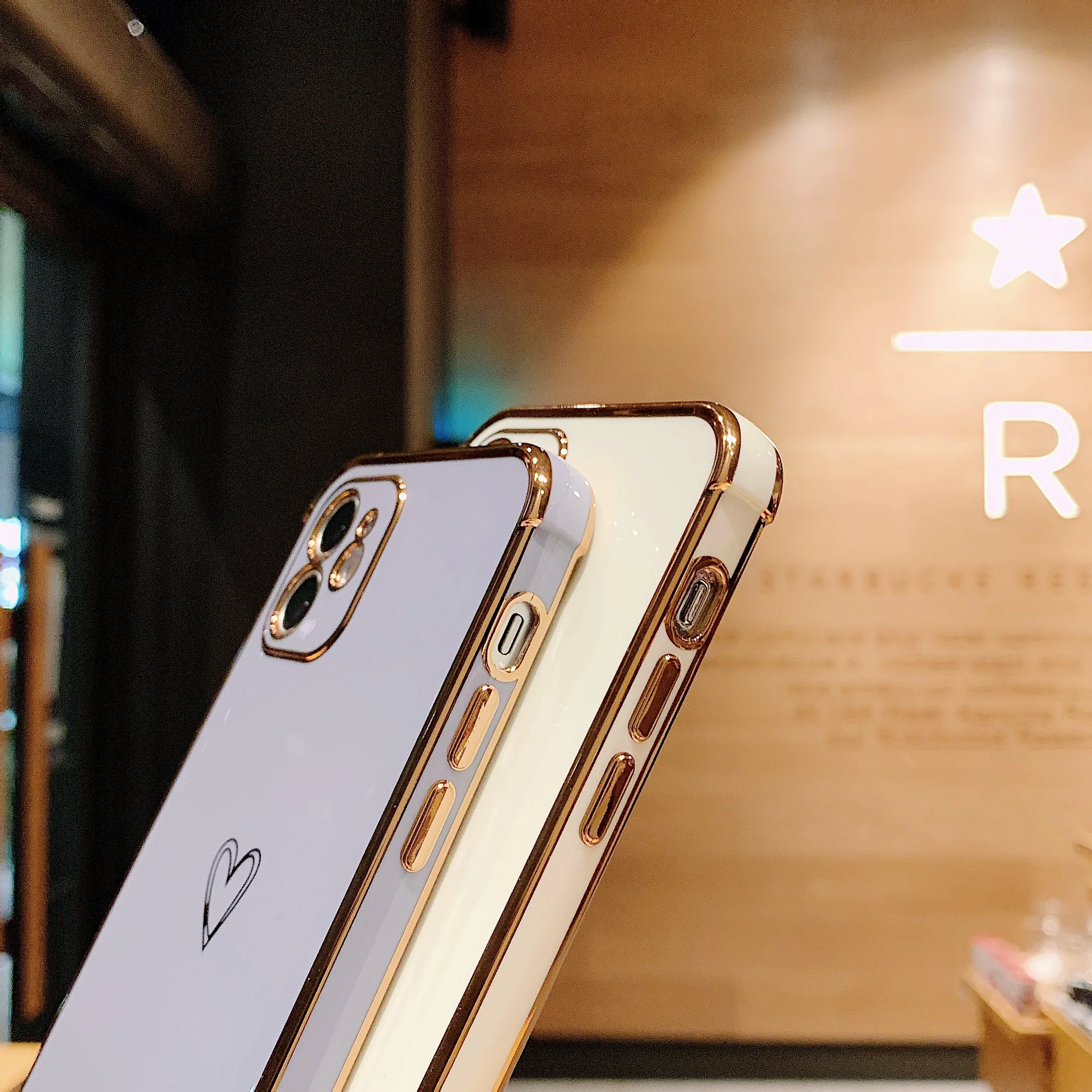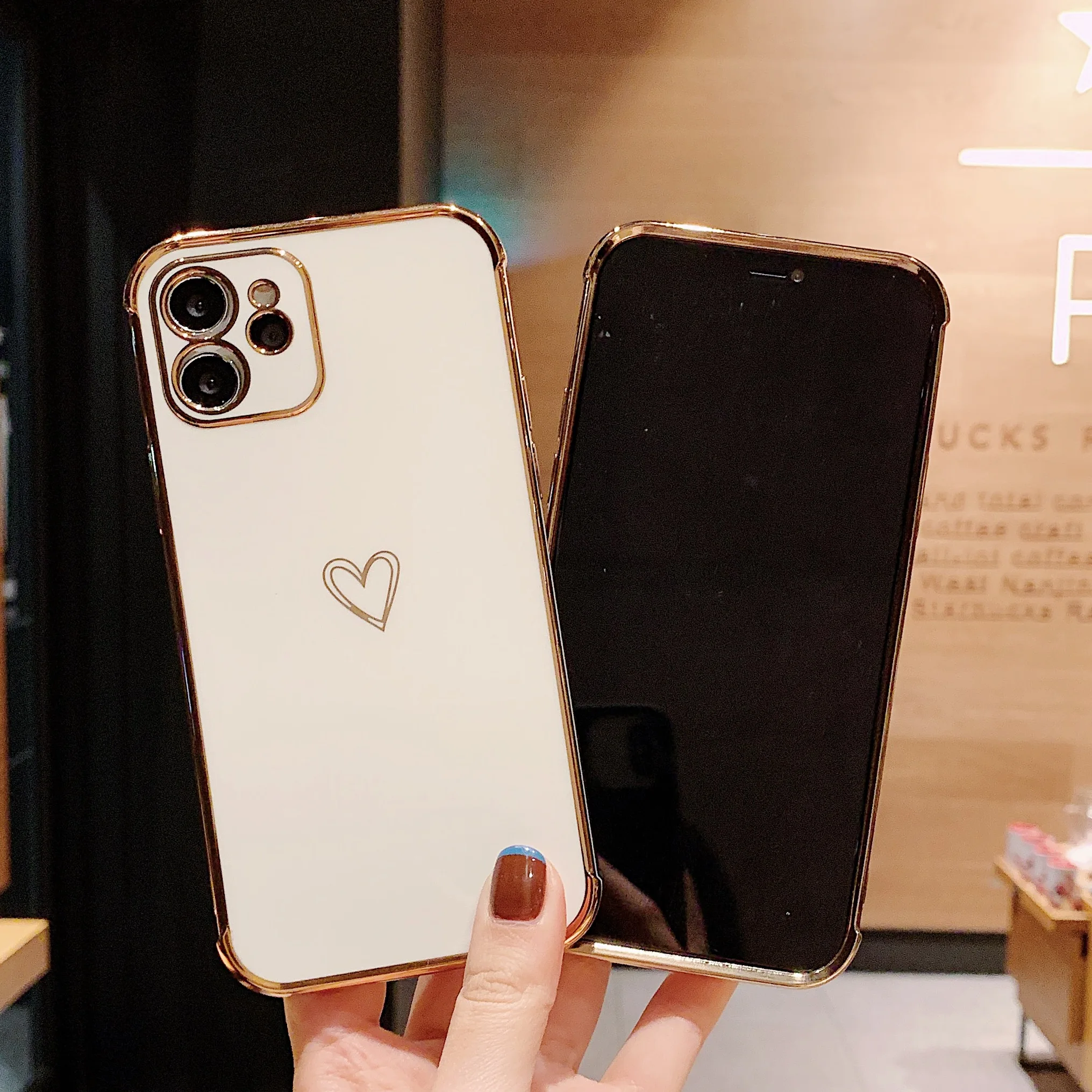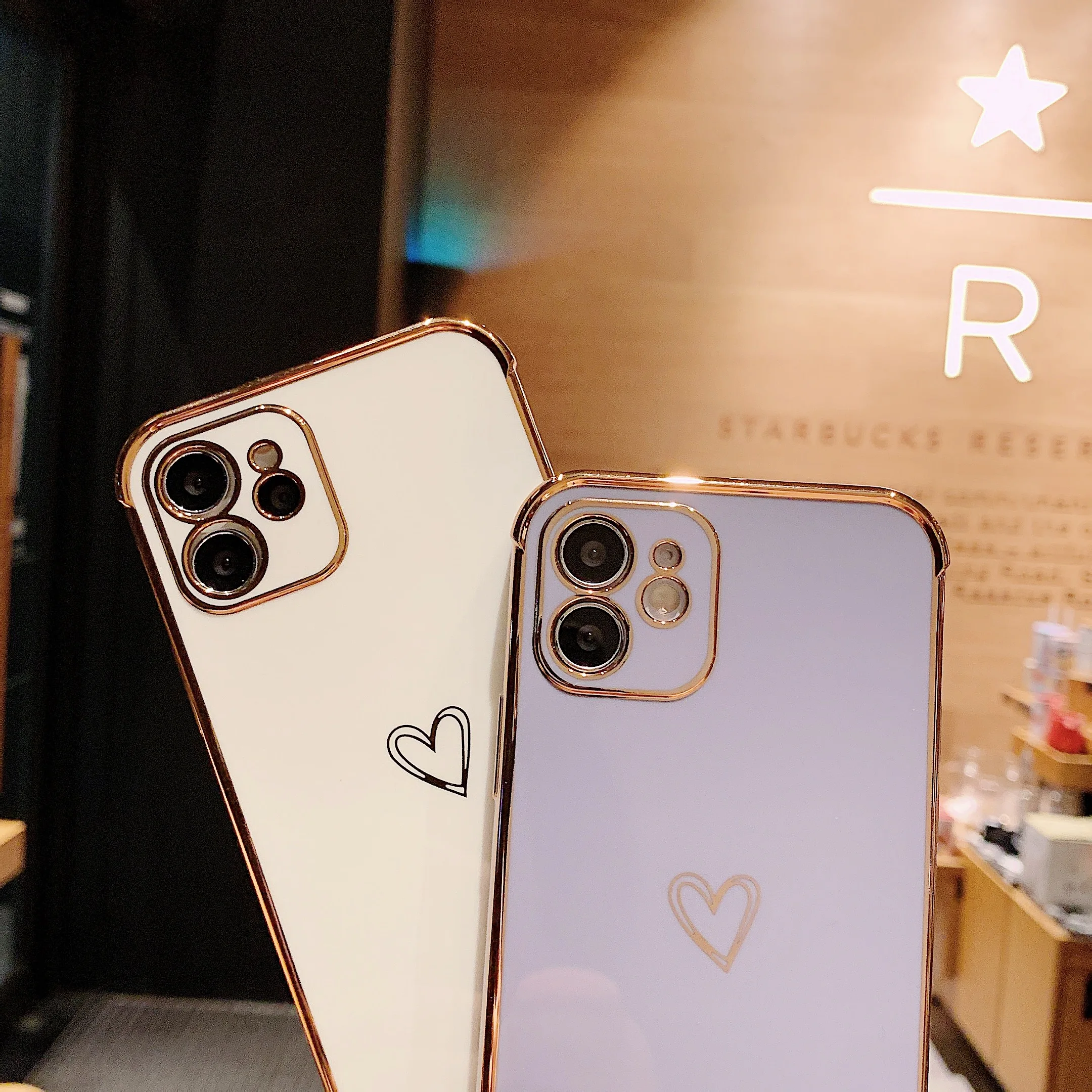 Чехол для телефона с гальваническим покрытием Love Heart для iPhone...