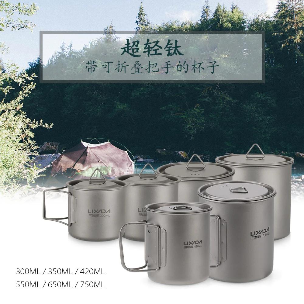 Титановая кружка Lixada, портативная кружка для воды, для кемпинга, пикника, со складной ручкой, 300350420550650750 мл
