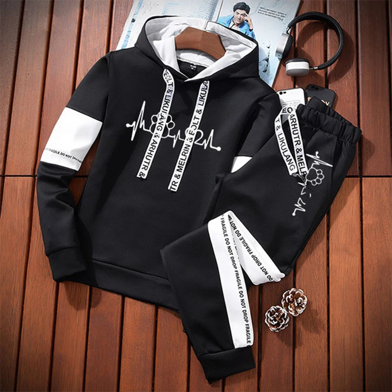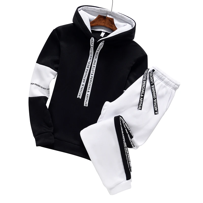 Повседневный Спортивный костюм для женщин комплекты Комплект из 2 предметов свитера пуловер толстовки и длинные черные брюки для девочек наряды спортивные штаны