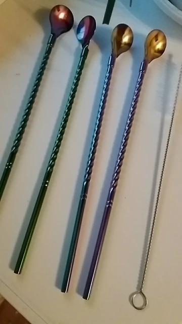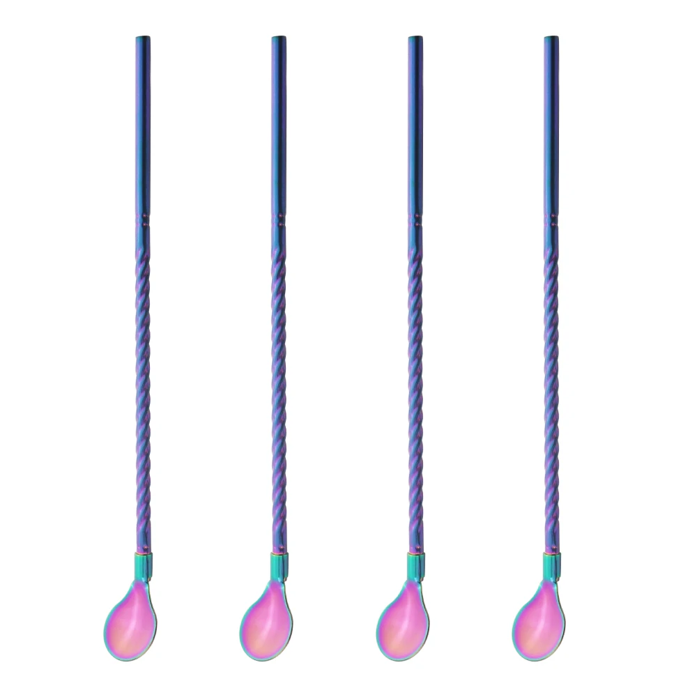4 шт многоцветный длинный соломы Ложка 1810 Нержавеющаясталь прямые многоразовые Соломы Бар вечерние коктейльное Кофе перемешивание Питьевой ложка
