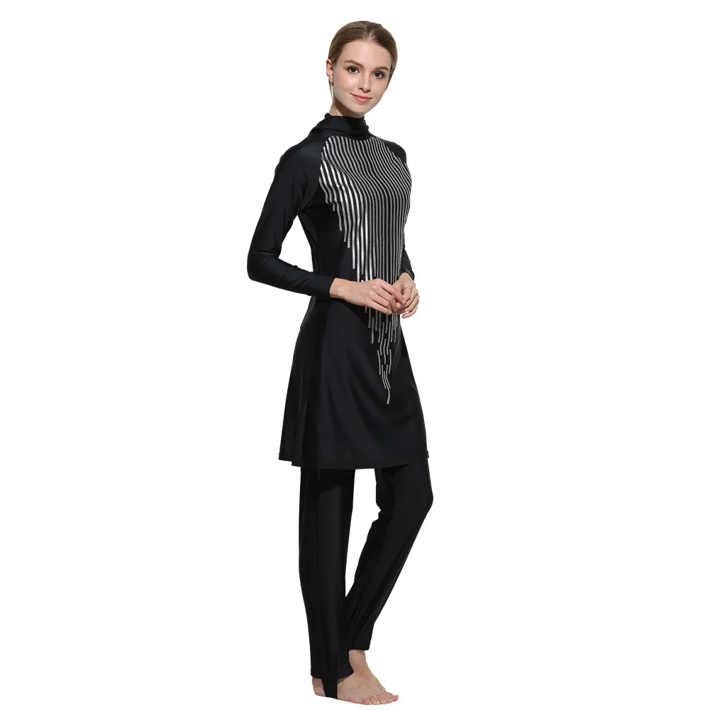 Женский консервативный купальник, черная пляжная одежда, Мусульманский купальник с длинным рукавом, накидка, купальный костюм из трех предметов, Женский комплект, 2021
