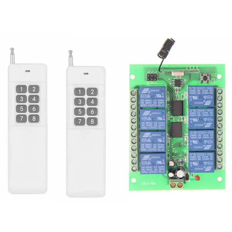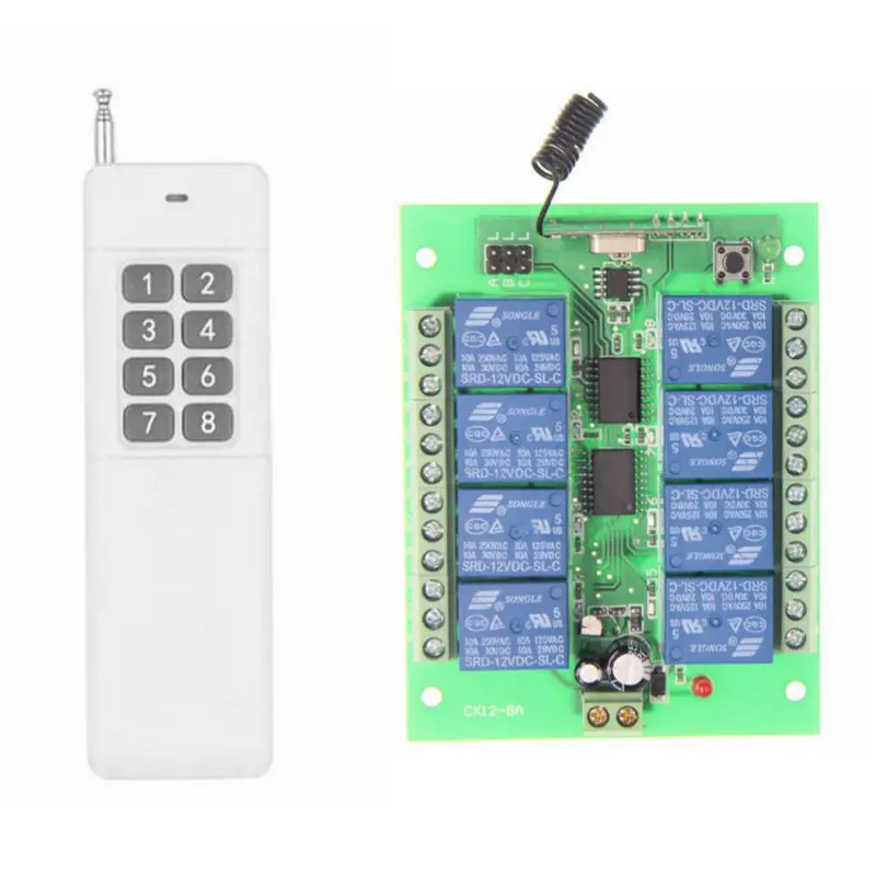 8-канальный беспроводной Интеллектуальный приемный контроллер выводит сигналы переключения для 8 реле, которые могут сделать оборудование контролируемым согласно требованиям переднего и обратного вращения двигателя, включение-выключение переключателя и различные специальные процедуры контроля. Он в основном используется в электрических дверях, окнах, подъемном оборудовании, воротах, лифтах, промышленном контроле и индустрии безопасности. Беспроводной приемный контроллер имеет характеристики высокой конфиденциальности, большой емкости для хранения, стабильной производительности, низкого энергопотребления и простоты в использовании. Не нужно использовать традиционное кодирование перемычки или переключателя циферблата. Он должен только позволить приемному контроллеру получать и хранить беспроводной сигнал, передаваемый пультом дистанционного управления, а затем его можно использовать в качестве полного набора. Если выученный пульт дистанционного управления потерян в процессе использования, просто очистите информацию, хранящуюся в приемном контроллере, потерянный пульт дистанционного управления не сможет дистанционно управлять приемным контроллером. Для того, чтобы вернуть право на использование, владелец должен узнать еще раз перед использованием. Его режимы вывода-самоблокирующийся, не блокирующий, блокирующий и так далее.