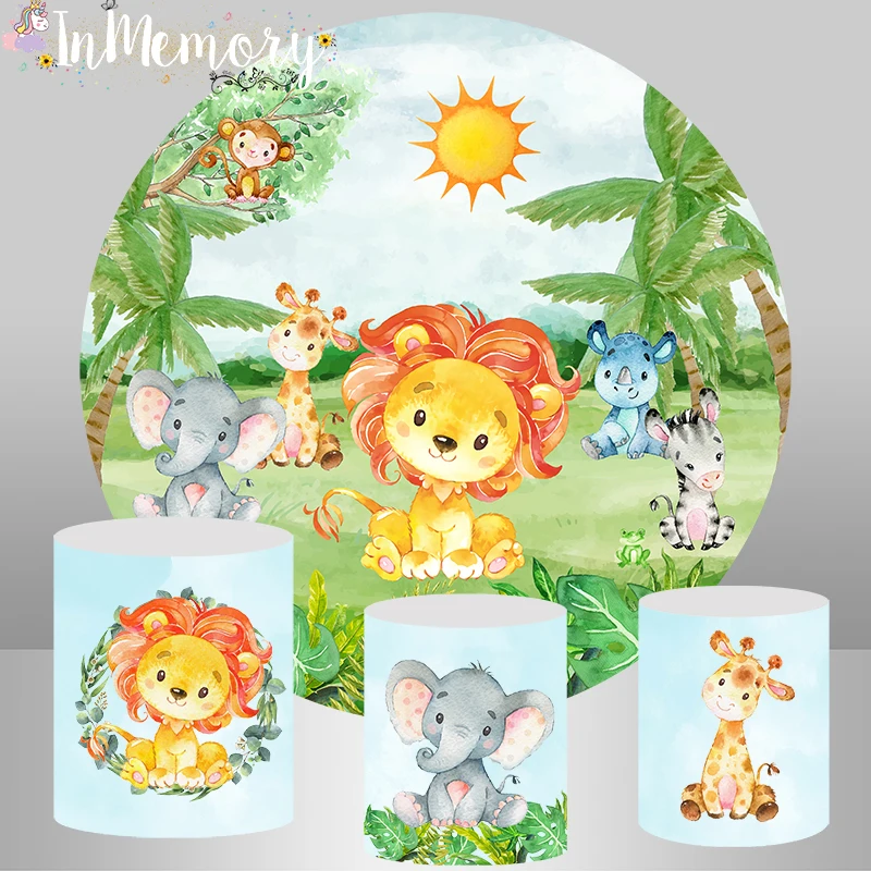 Сафари круглый детский душ фон Jungel животные Лев Жираф Дети первый день рождения Круглый фон для вечерние Декор Крышки Цилиндров