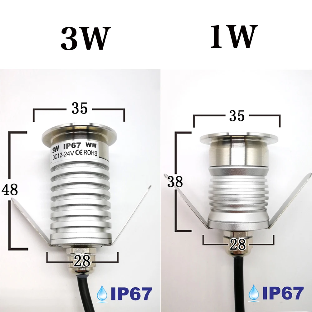 Светодиодный страиваемая светодиодная подземная лампа, водонепроницаемый DC12-24V светильник IP67, садовый наземный Точечный светильник для лестничная площадка, 1 Вт, 3 Вт