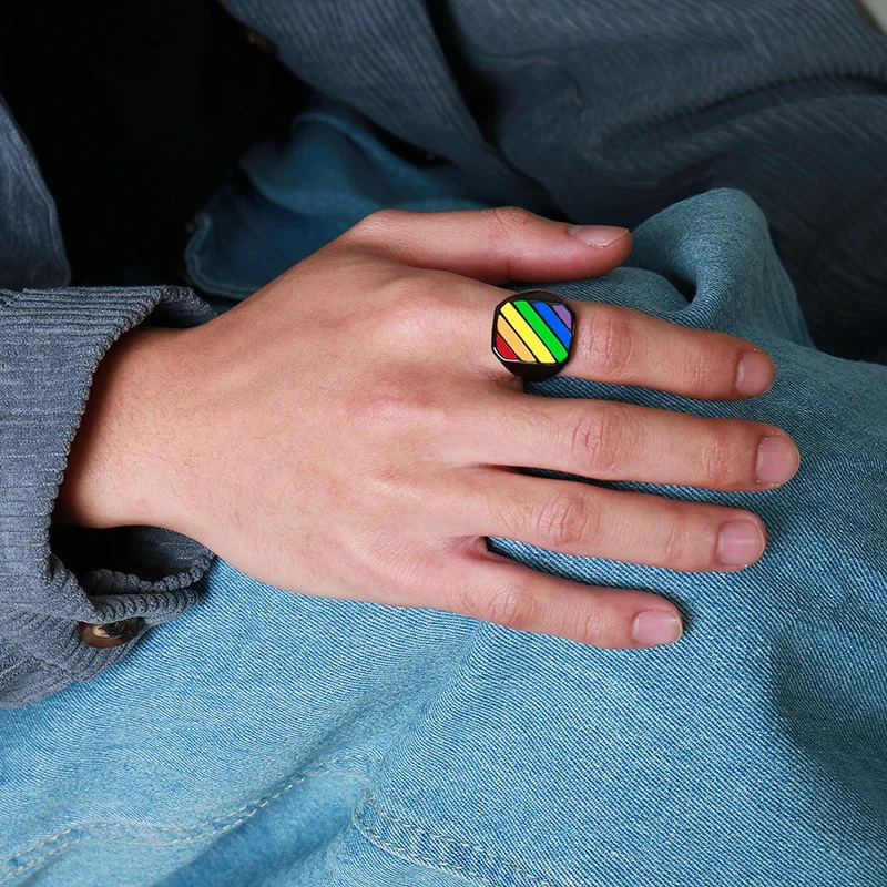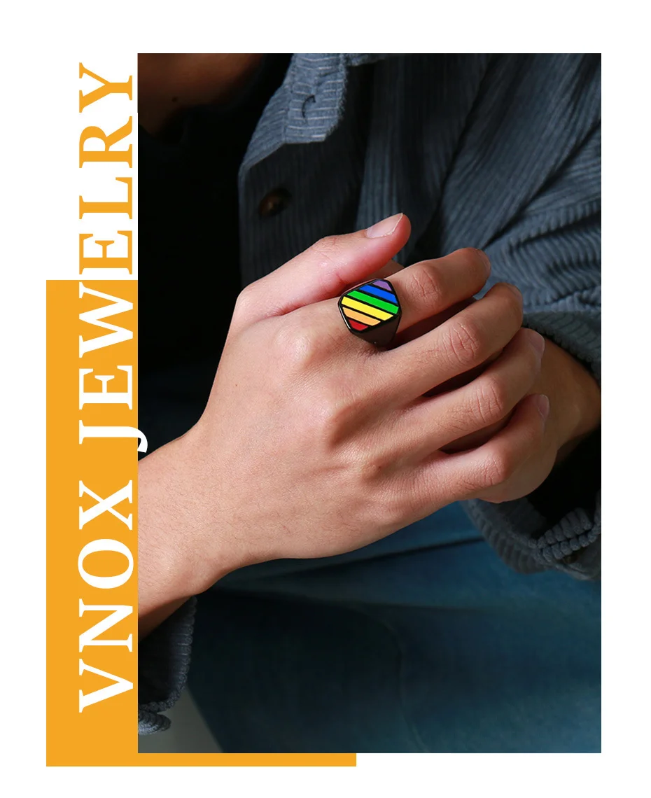 Мужские панк-кольца Vnox радужного цвета, черные ЛГБТ-пальцы из нержавеющей стали, массивные ювелирные изделия