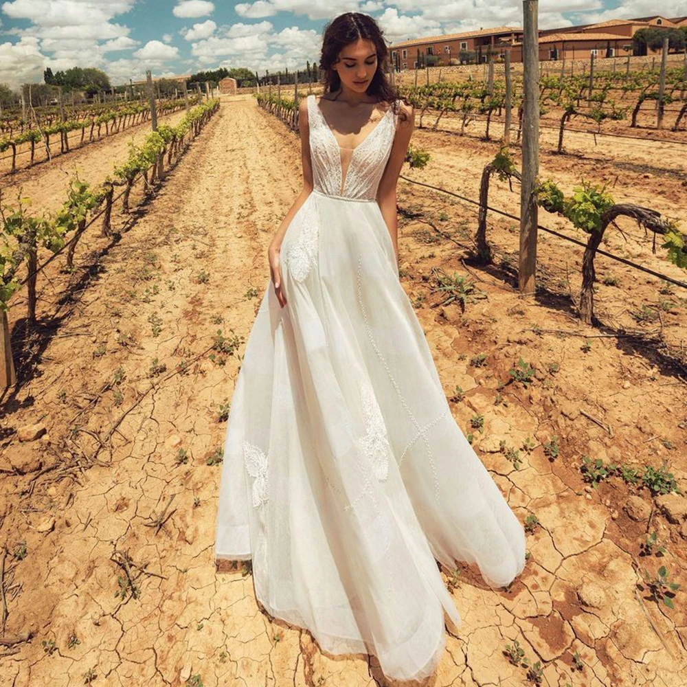 UZN свадебное платье цвета слоновой кости трапециевидной формы с v-образным вырезом, кружевной аппликацией, свадебные платья, сексуальное платье без рукавов для невесты со складками, на заказ