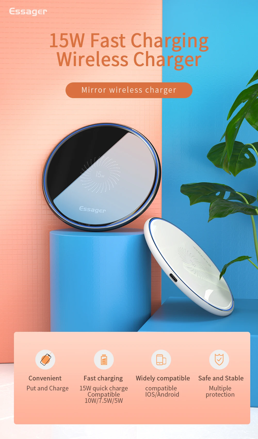 Feature 2wireless charging pad / wireless fast charger / wireless charger