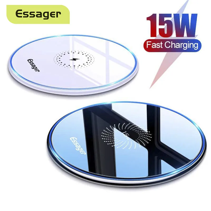 Беспроводное зарядное устройство Essager 15 Вт Qi для iPhone 12, 11 Pro, Xs Max, X, индукционное зарядное устройство, Беспроводная зарядка телефона для Xiaomi, Samsung