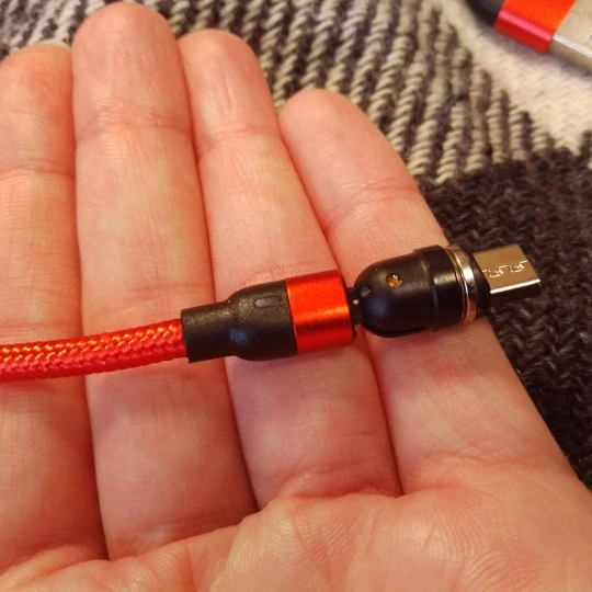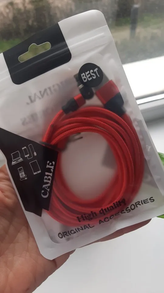 Отличный кабель! Просто находка для тех, кто любит пользоваться телефоном когда он находиться на зарядке , а также во время игр на смартфоне или просмотров фильмов. Кабель оснащен вращающейся магнитной головкой , поэтому он может изменять конфигурацию позиционирования в диапазоне 540° в обеих плоскостях (вокруг своей оси и слева направо) находка для любителей играть или смотреть фильмы на смартфоне. На вид красивый и крепкий. В общем приятный шнур во всех отношениях. Рекомендую! Приходит в фирменным зип-пакете.