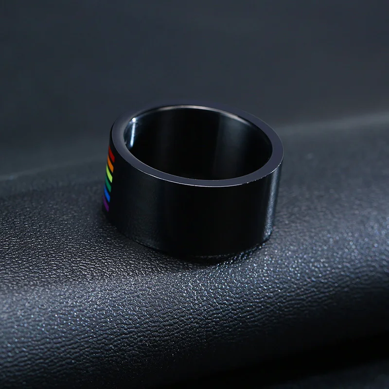 Vnox 10 мм Радужная идентификация для мужчин, черная эпоксидная смола из нержавеющей стали, браслет на палец с надписью Pride LOVE, цветные яркие ювелирные изделия US #7-#12