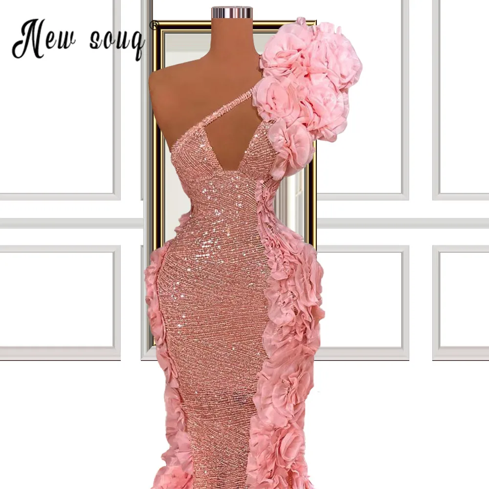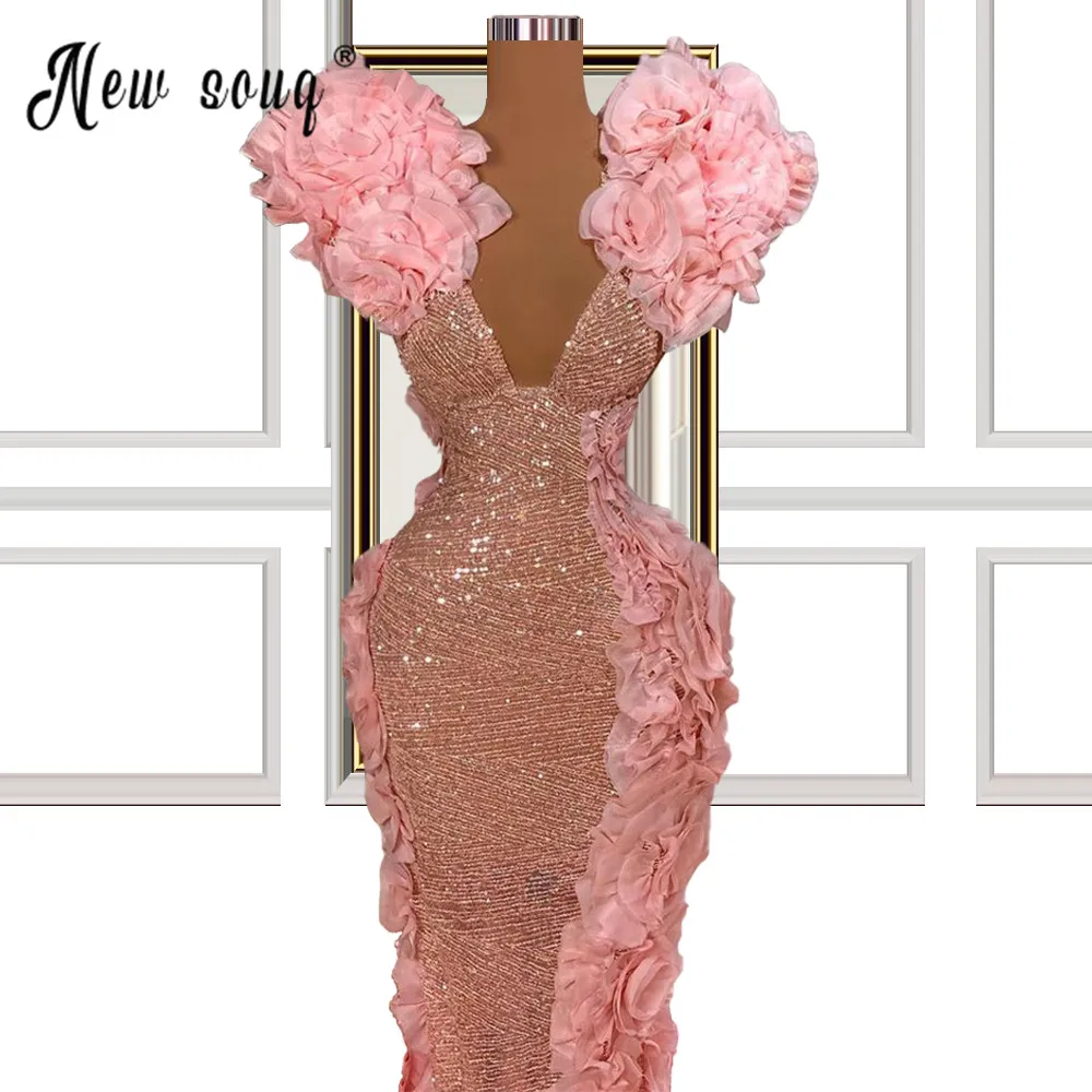 Блестящие детские розовые вечерние платья русалки с цветами ручной работы, с V-образным вырезом, арабское официальное платье для выпускного вечера, размера плюс на заказ, 2021