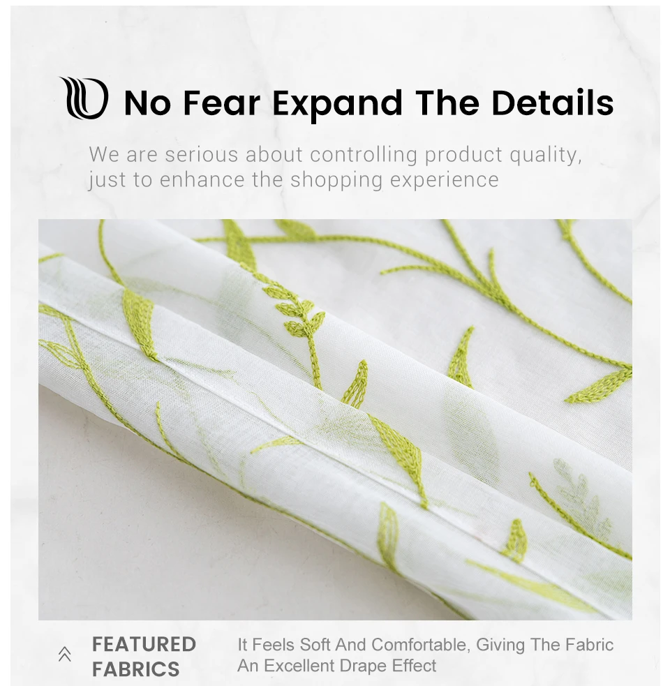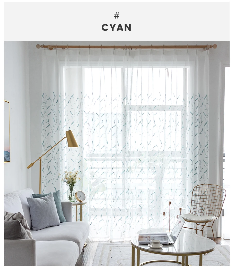 Шторы LISM с вышивкой листьев, прозрачные тюлевые занавески из вуал...