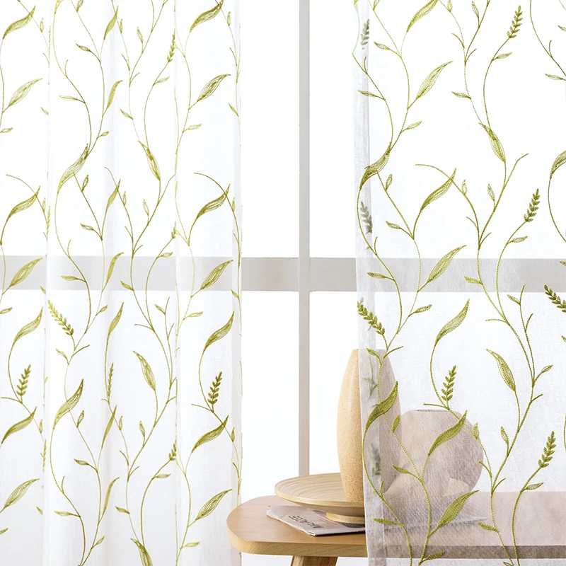 Занавеска из тюля для гостиной, спальни, кухни, с вышивкой листьев