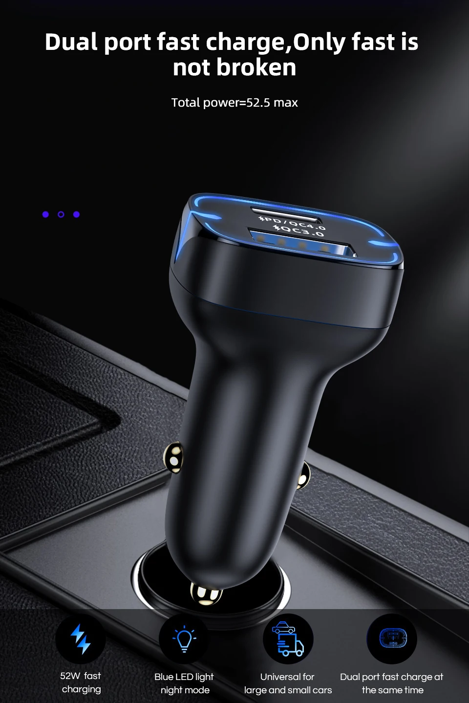 Автомобильное зарядное устройство имеет два порта: 1. Порт QC 3,0: совместим с Huawei Super Fast Charge FCP, Xiaomi / Samsung (QC3.0 / AFC), Meizu PE2.0/3,0 и другими мобильными телефонами с быстрой зарядкой, apple 2.4A iphone SE / 11 / X...2.PD3.0 / PPS:Совместим с 99% портом Type-C перезаряжаемым ноутбуком HP DELL XPS iPad Pro Mac book...Подходит для быстрой зарядки Apple PD, быстрой зарядки iphone 12 / 11 / X 18W, подходит для быстрой зарядки Samsung 25W