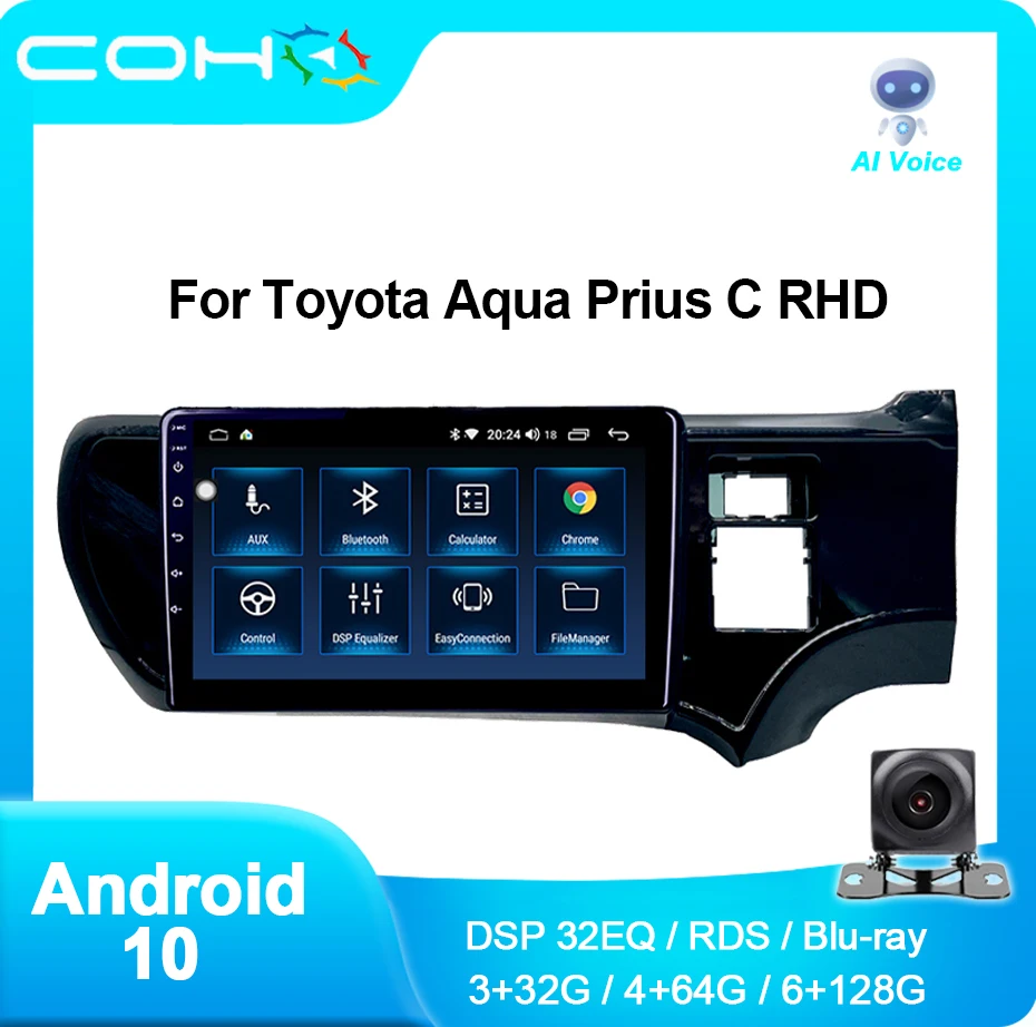 Автомобильный мультимедийный плеер COHO для Toyota Aqua Prius C RHD Android 10 Octa Core 6 + 128G, автомагнитола, стерео